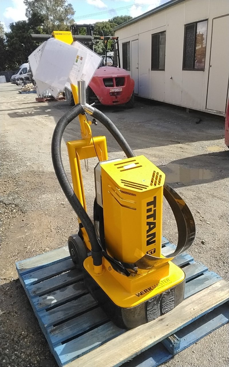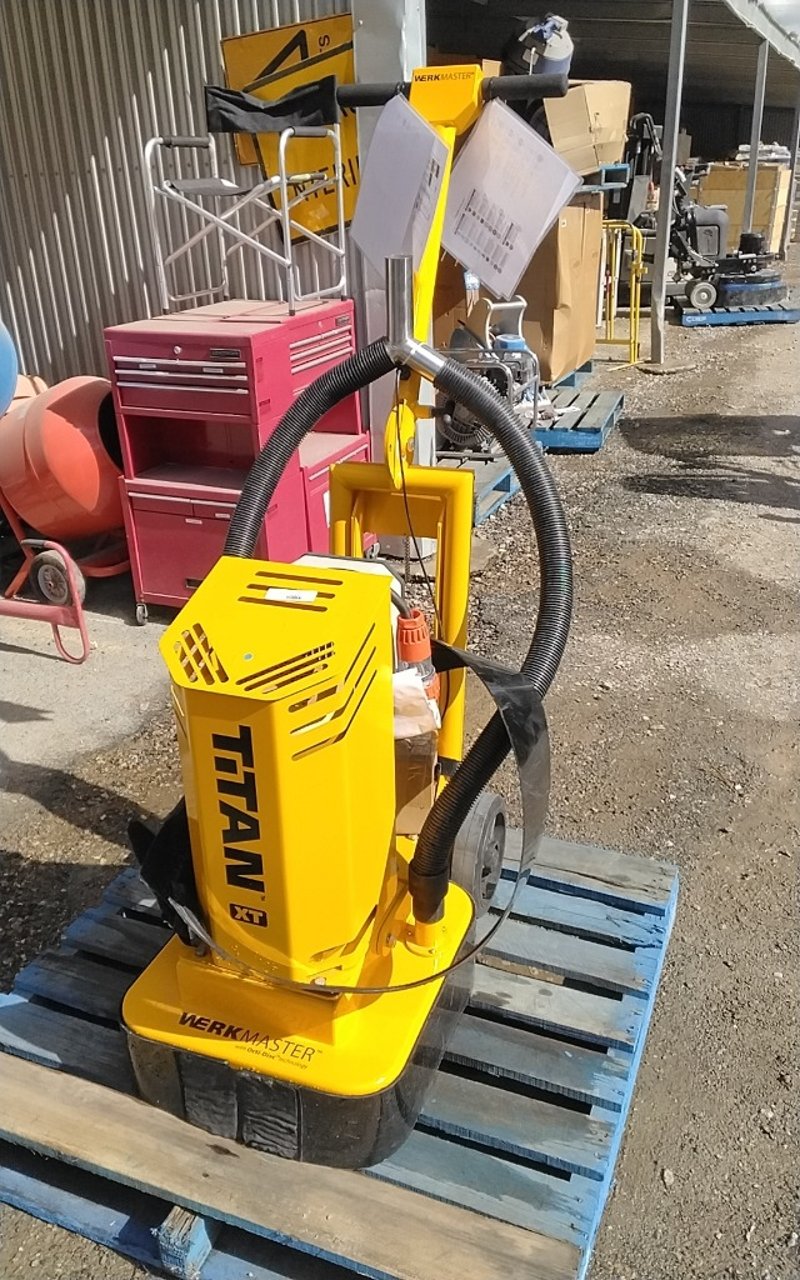 UNUSED 2021 Werkmaster Titan XT Commercial Floor Grinder/Polisher Year: 2021 Make: Werkmaster Model: Titan XT Serial No: 0963220E Dimensions: 1030mm Height, 800mm Length, 500mm Width Description: Commercial Floor grinder/ Polisher, 3 phase, 425 volt, 13.5Amp, 7,5kw, 10Hp
