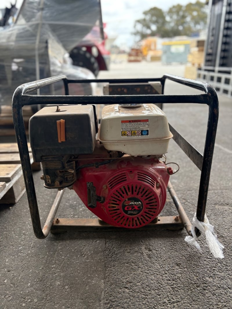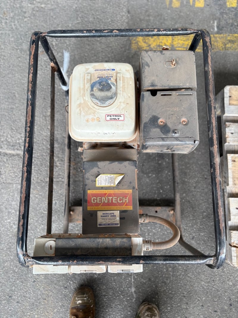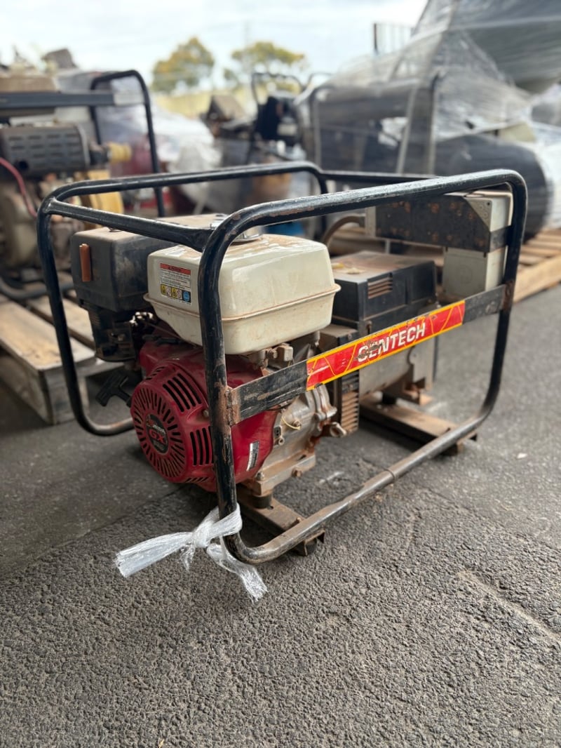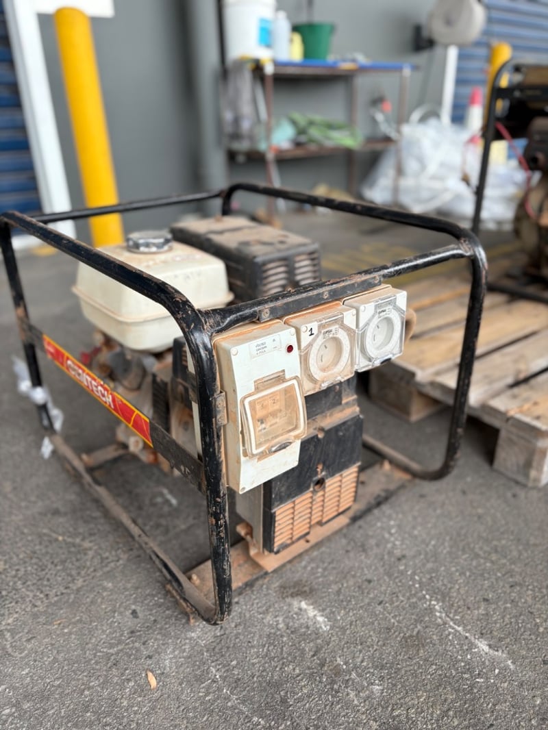 Gentech Petrol GeneratorFitted with Honda GX390 Engine (EURO2, 13HP), Single Phase Output, Mounted in Heavy-Duty Steel Frame with Dual 240V Outlets.