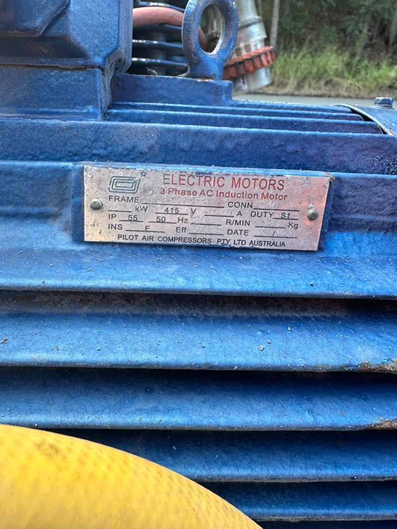 Pilot Air K30 – 10HP 3-Phase Air Industrial Compressor Australian-made by Pilot Air, • 10 horsepower, 3-phase (415V) • Approx. 200–270L tank capacity • Air delivery: 871 L/min • Reliable cold starts and no mechanical faults • Recently serviced