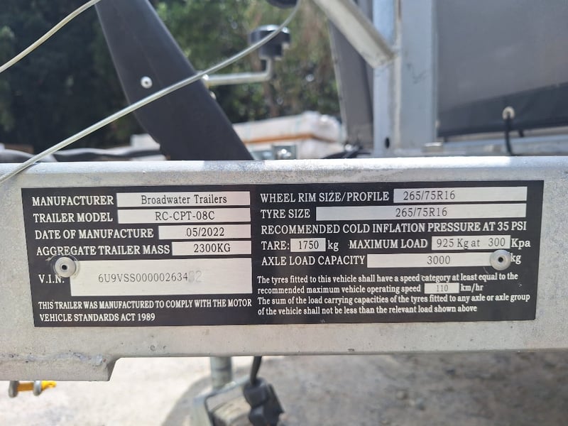 2022 Broadwater Hamilton Camper Trailer Year: 2022Make: Broadwater Trailer's Model: RC-CPT-08CConfiguration: Single Axle Suspension: Heavy Duty Independent ATM: 2300KgTARE: 1750KgTRAILER LENGTH: 5850mm Including DrawbarDescription/Extras: Front Fold Camper, Sleeps 2-4, Uniglide Uniglide Coupling, Handbrake, Jockey Wheel, Chains, Front Winch, Water Tap On Drawbar, Anderson Plug, 12V Plugs, Slide Out Storage, Dometic 3-Burner Stove With Single Stainless Sink, Spare Tyres, Rear Storage, Annex With Tarps Poles Plus More VIN: 6U9VSS00000263492MMR33 carrara#MMR