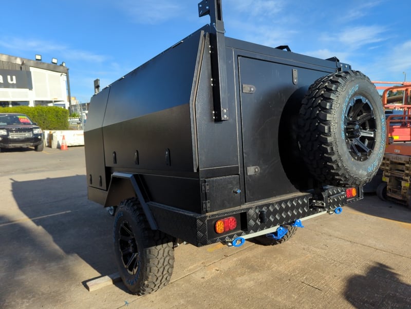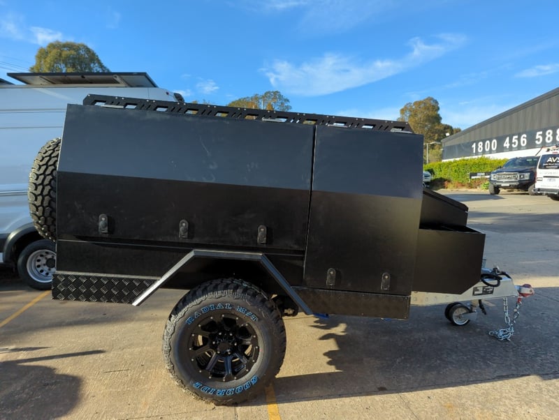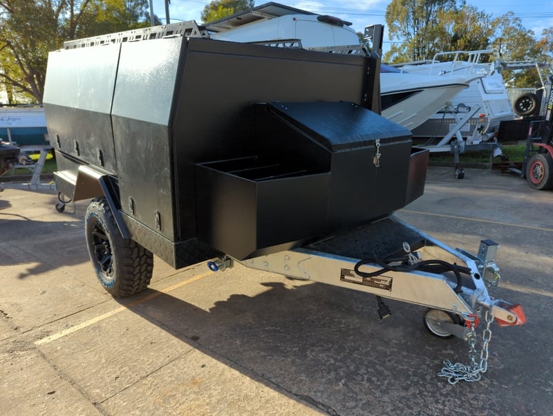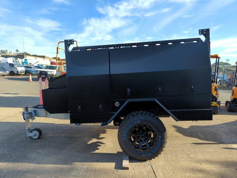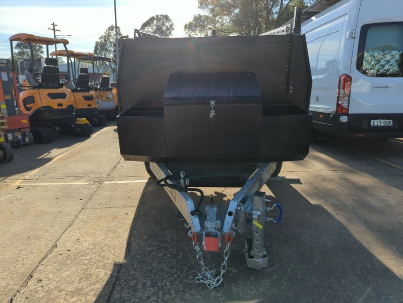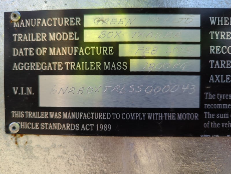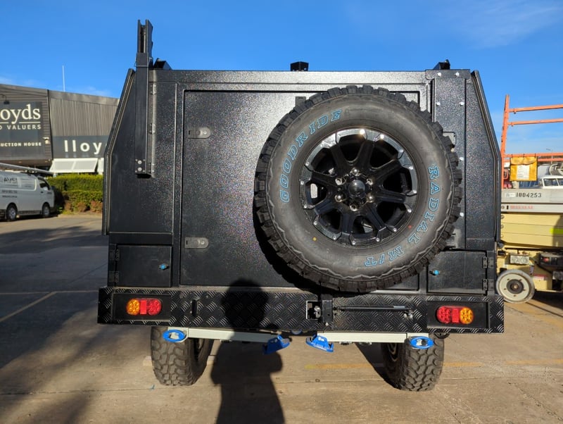 BRAND NEW 2025 K8S Hybrid Tradie/Camper White Overall size: 3850mm(L) x 1880mm(W) x 1890mm(H) Weight TARE weight :850KG ATM :1800KG Body: Aluminium panel +top aluminium plate Main features 3 x 265/75/R16 tyres 2 X Independent suspension with two shock absorbers each side and coil springs 1 x heavy duty jockey wheel Australian standard chains Australian standard tow hitcher Breakaway system 1 x 9kg Gas holder 2 x 20L Jerry Can Holders 4 x Heavy Duty stabilizer legs Lighting system 2 x tall lights. 1x number plate lights 4 x LED lights inside Water system 1 x electric water pump 1 x 120L water tanks 1 x water filler Electric system 1 x Deep Cycle Battery 100AH 1x DC Battery Charger 1000W inverter Anderson wires All Australian standard wires and equipment Notes: 2 locks on side door stuck (refer to photos) VIN: 6NRBOXTRLSS000043 Lloyd's stock #160904+1 #MMR
