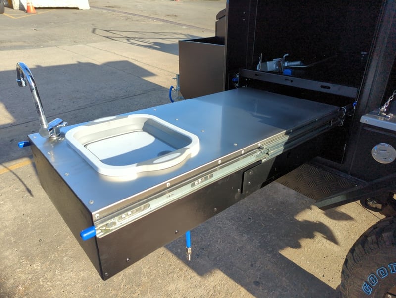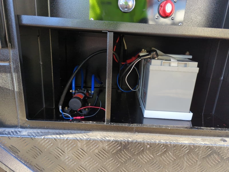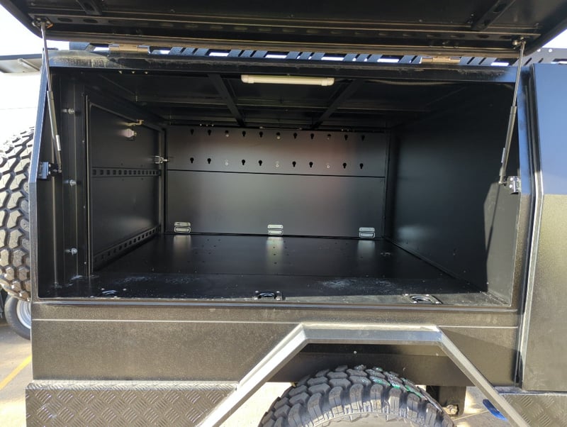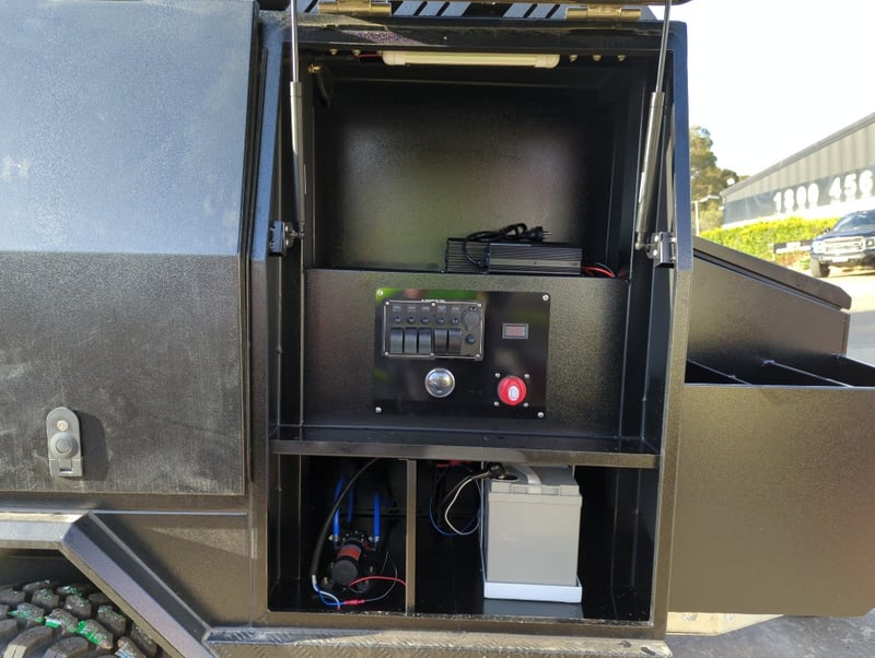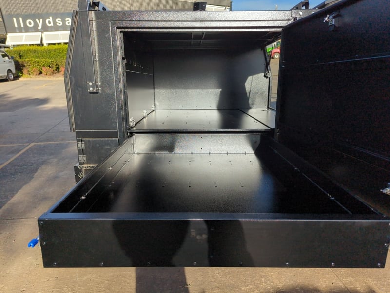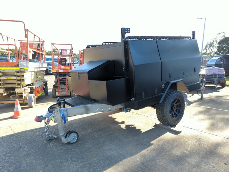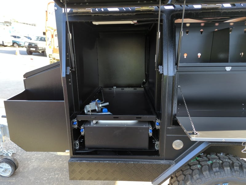 BRAND NEW 2025 K8S Hybrid Tradie/Camper White Overall size: 3850mm(L) x 1880mm(W) x 1890mm(H) Weight TARE weight :850KG ATM :1800KG Body: Aluminium panel +top aluminium plate Main features 3 x 265/75/R16 tyres 2 X Independent suspension with two shock absorbers each side and coil springs 1 x heavy duty jockey wheel Australian standard chains Australian standard tow hitcher Breakaway system 1 x 9kg Gas holder 2 x 20L Jerry Can Holders 4 x Heavy Duty stabilizer legs Lighting system 2 x tall lights. 1x number plate lights 4 x LED lights inside Water system 1 x electric water pump 1 x 120L water tanks 1 x water filler Electric system 1 x Deep Cycle Battery 100AH 1x DC Battery Charger 1000W inverter Anderson wires All Australian standard wires and equipment Notes: 2 locks on side door stuck (refer to photos) VIN: 6NRBOXTRLSS000043 Lloyd's stock #160904+1 #MMR