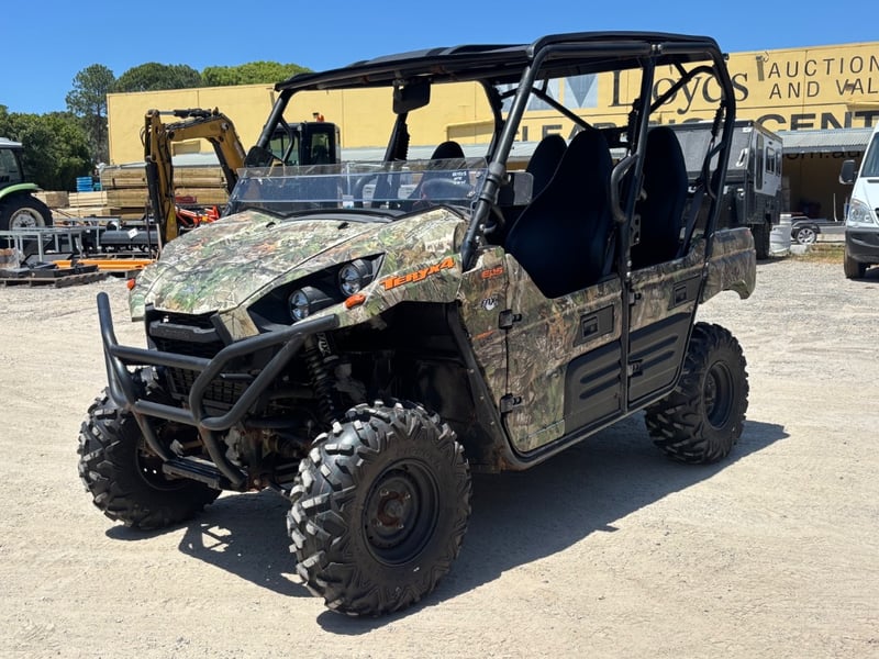 2021 Kawasaki Utility factory LHD Year: 2021 Make: Kawasaki Model: TERYX4 EP5 Body: Buggy Drive Type: FWD or 4WD Odometer: Indicating 5048 Hours Engine: 783 cc 2-cylinder V-Twin, 4-stroke Transmission: CVT Colour: Black and Camo Seats: 4 VIN: JKBRTCH10MB503430 ENG No: UNSIGHTED Interior: - Marks, Smudges and Wear on Trim and Upholstery - Handbrake doesn’t work. - Steering doesn’t work - Alternator doesn’t keep charge - Flat Battery - Surface and Structural Rust Present Inside the vehicle Exterior: - Heavy Surface and Structural Rust present throughout - Panel Scratches, Dents and Marks Advised to inspect before bidding. SOLD UNREGISTERED key# M72 Carrara