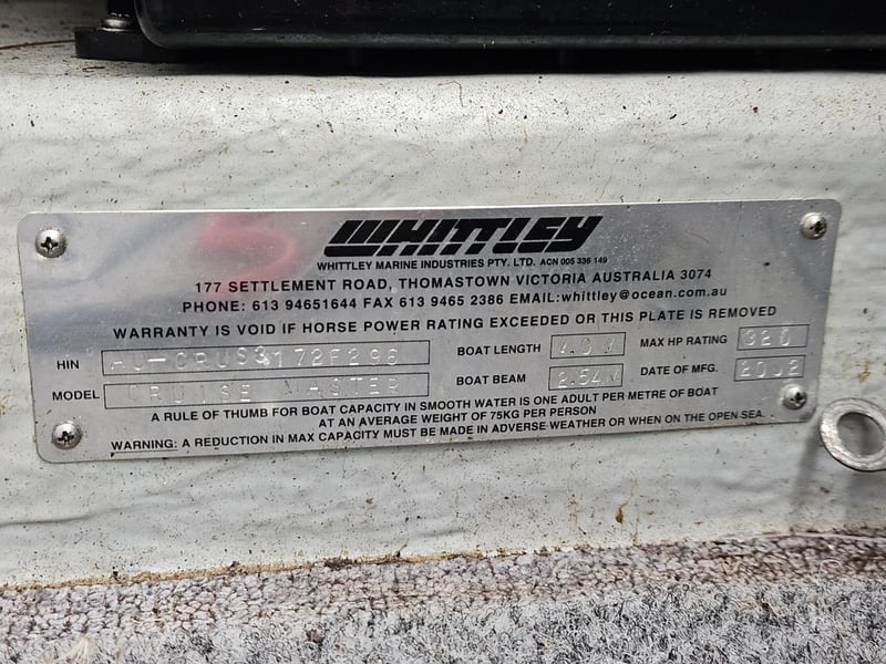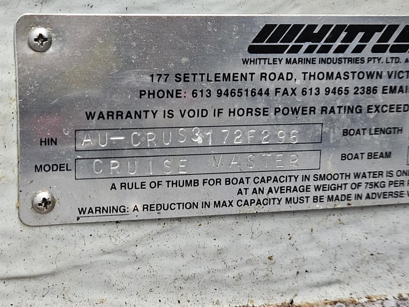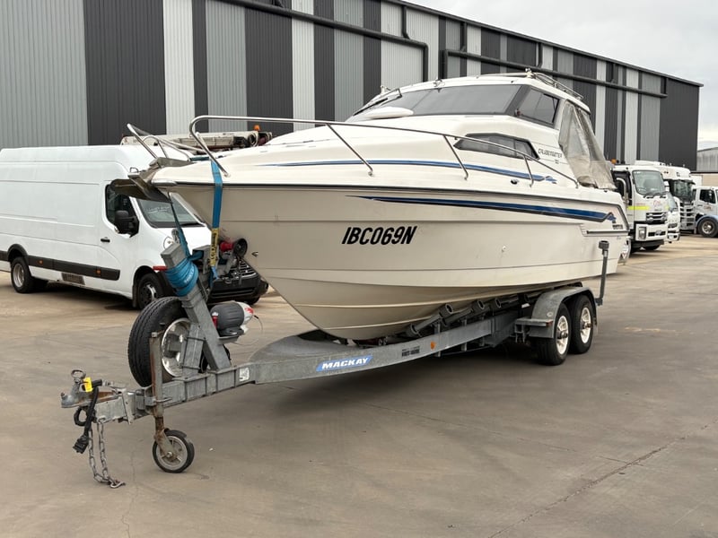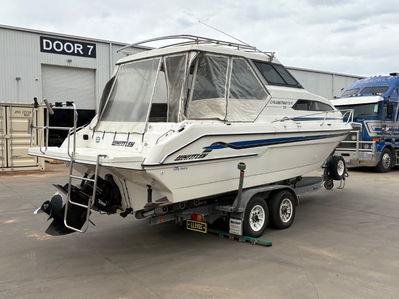 2005 Whittley Cruise Master 700 Year: 2005 Make: Whittley Model: Cruise Master 700 HIN #: AUCRUS3172F296 Odometer: -- Colour: WHITE Length: 7 Metres Beam: 2.54 Metres Draft: 0.9 Metres Dry Weight: 2047 Kilos Accommodation: Toilets: 1 Water Capacity: 130 Litres Holding Tank: 40 Litres Cruising Speed: 20 Knots Max Speed: 40 Knots Description/extras: Life Jackets, Anchor, Navigation system, TV, Swimming Ladder, Fishfinder. x1 missing battery. Not Running. WITH AN INBOARD ENGINE: Make: MerCruiser Model: Mcm 5.0L MPI Engine No: 0M163654 Fuel Type: Petrol ON A TRAILER: Year: 2002 Make: MACKAY MULTI-LINK Model: MLKR4750 ATM: 3750 Kilos VIN: 6FYKR650T2M652103 Registration: No registration sighted. Registration will be cancelled within 24 hours of receipt of payment. Sold unregistered. Inspection Welcome. Whilst personal on-site Inspection is preferable, to arrange a Facetime inspection Monday to Friday with your iPhone, e-mail your contact details to [email protected] This asset is sold under standard auction conditions, as is, where is. This description is not a condition report and is for use as a guide only. The photos are current as at time of book in. Lloyds do not knowingly sell faulty goods. Inspection is highly recommended prior to sale & is the responsibility of the bidder. There is no warranty & no cooling off period. (Key # S7) Lloyds stock # 990462+1