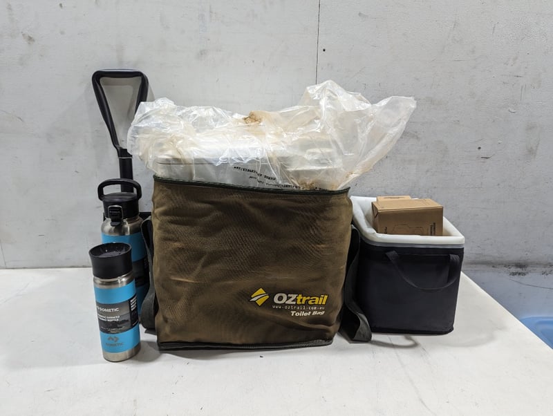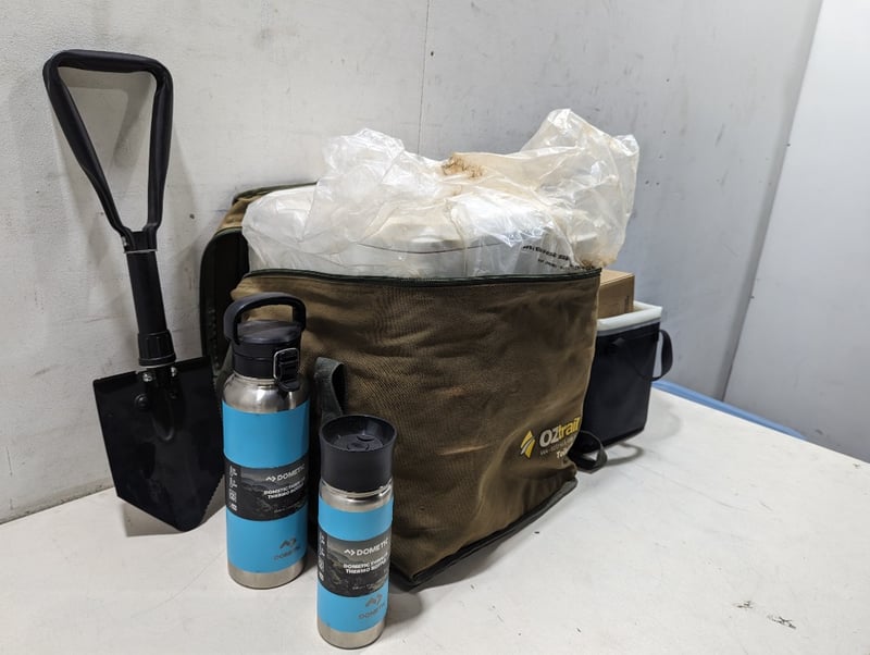 Camping Shovel, Camping Water Bottles, Camping chill bin & more Bid per lot