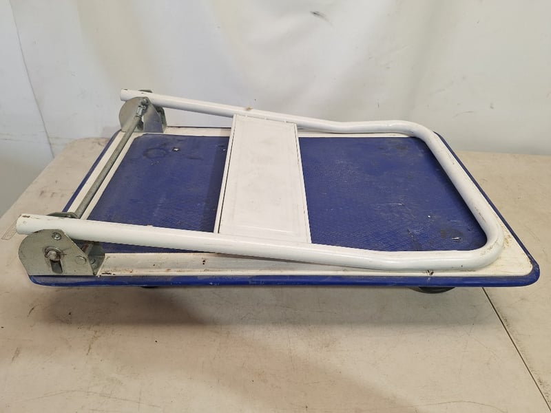 Folding Platform Trolley, 4 Wheels, Metal Style, White & Blue Finish Dimensions H:78cm W:47cm D:72cm