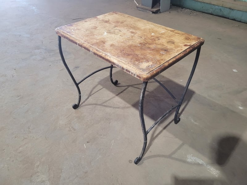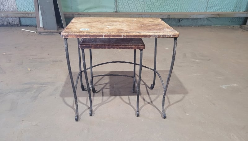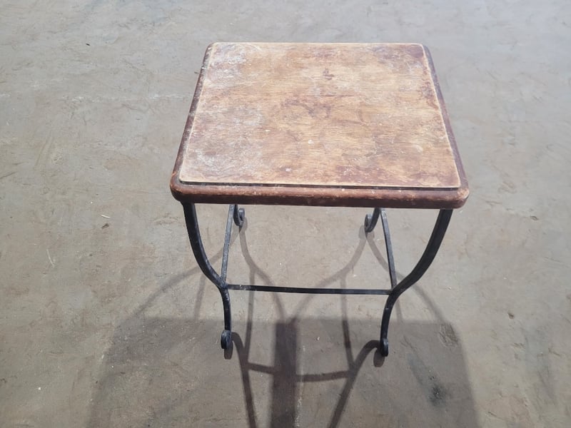 2 Small Tables. Both Metal Frame with Wood Top. Used Condition. SOLD as LOT.