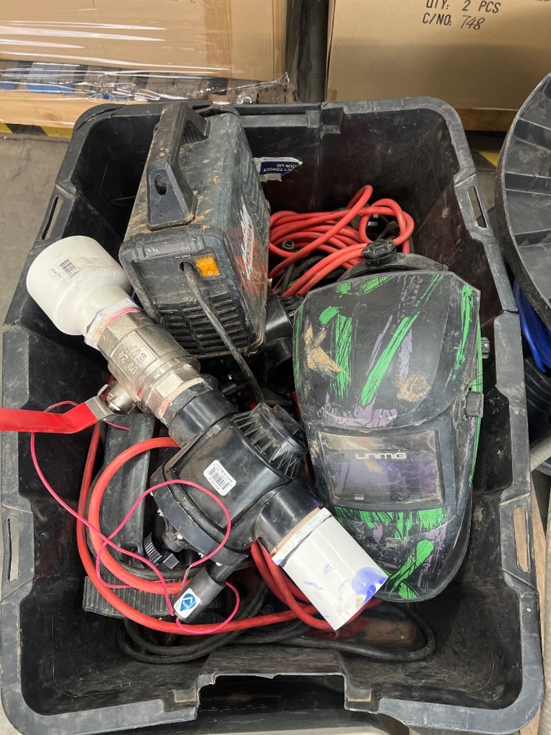 assorted construction/ welding equipment, brands/ models assorted, includes; pump, reel