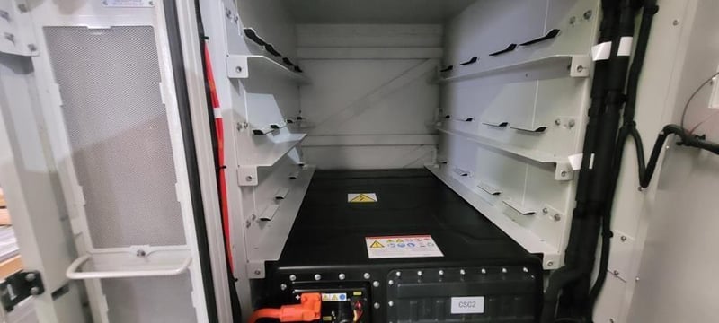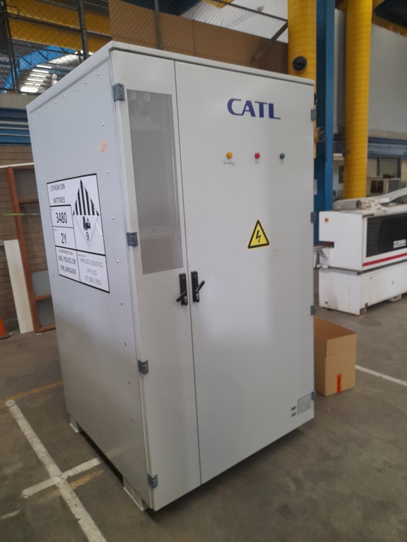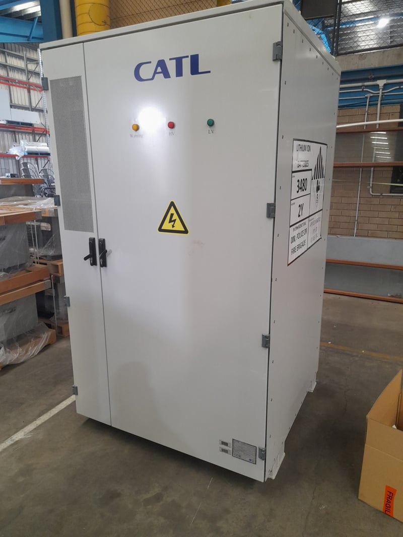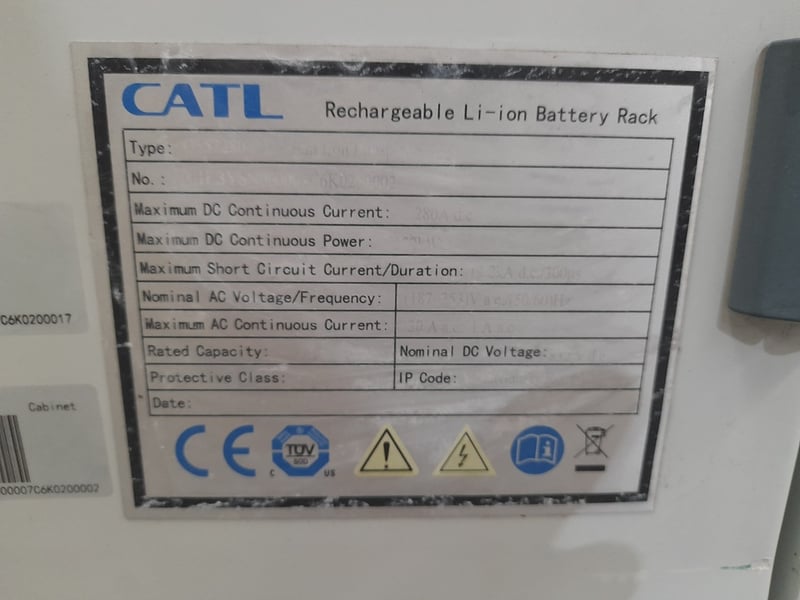 2022 233kWh CATL Liquid Cooled Rechargeable Li-ion Battery Pack Suitable for Small to Medium Commercial and Micro Grid Solutions Specifications: Type: 0552280-P Lithium Iron Phosphate No: 001PBYSN000007C6K0200002 Maximum DC Continuous Current: 280A DC Maximum DC Continuous Power: 232kW Maximum Short Circuit Current/Duration: 12.2kA dc/300us Nominal AC Voltage/Frequency: (187-253) aV ac/(50/60)Hz Maximum AC Continuous Current: 30 A ac/1Aac Rated Capacity: 280Ah Nominal DC Voltage: 832V Protective Class: 1 IP Code: IP 66 (Battery room) Approximate Dimensions: 1300mm x 1300mm x 2300mm Weight: 2500kg