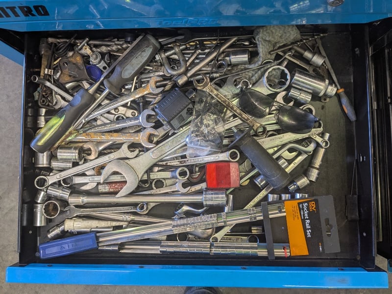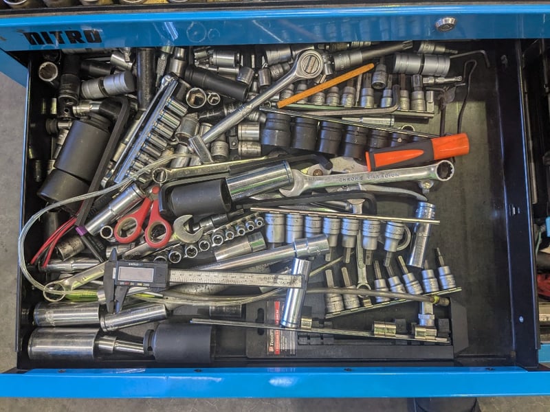 Tool Pro Nitro Metal Tool Box with Assorted lot of Hand Tools Including Socket Sets Spanners, Torque Wrench, Digital Calipers and More, Refer To Images, Sold as Lot