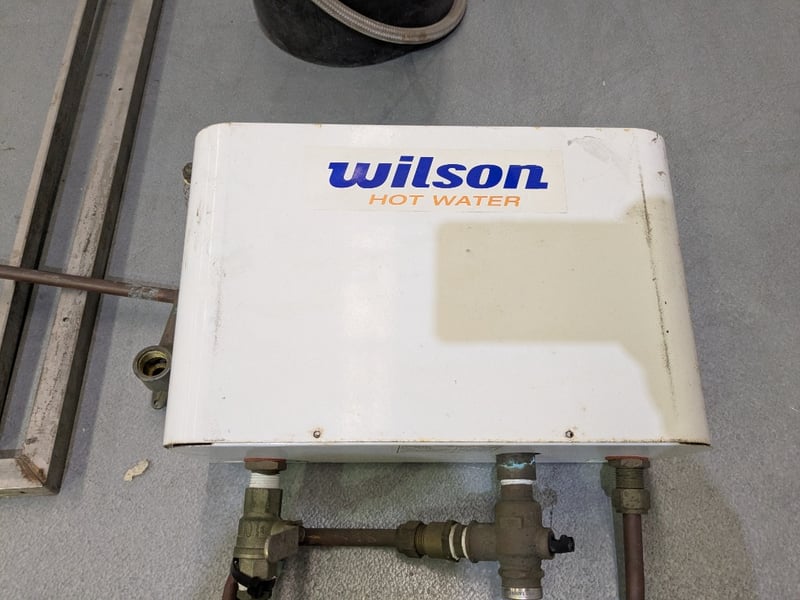 Wilson Instant Hot Water Heater System, Brita Professional Aqua Cleaner, Copper Pipiing Included + Metal Frames Note: Untested Sold as Lot