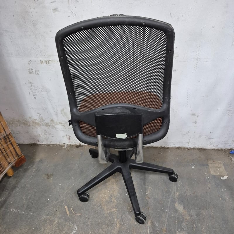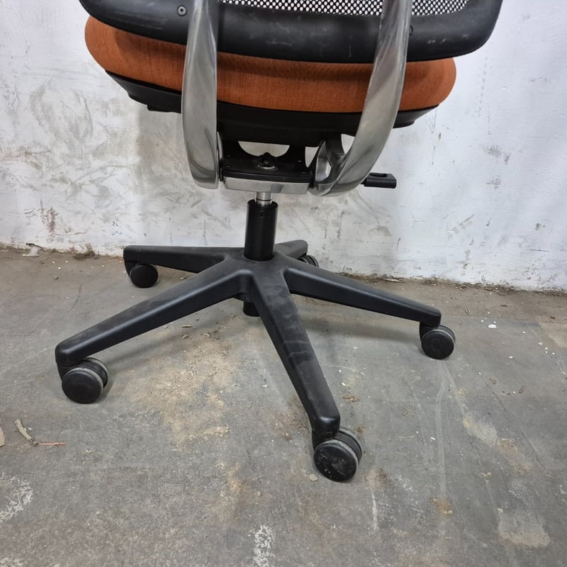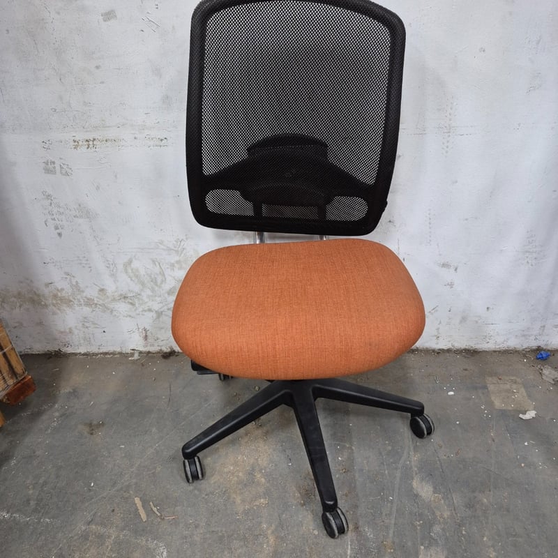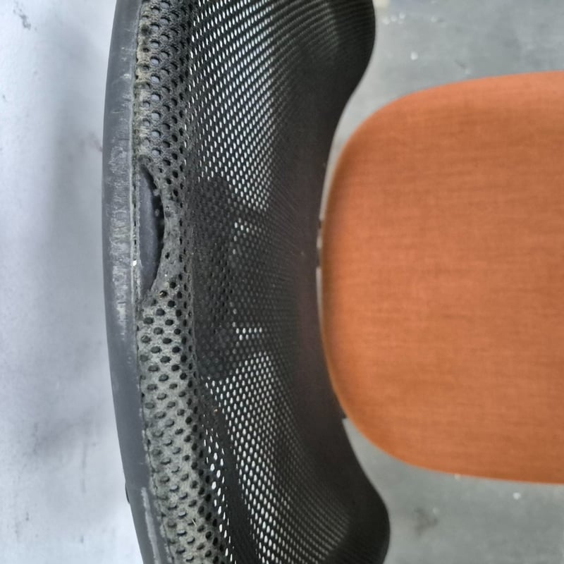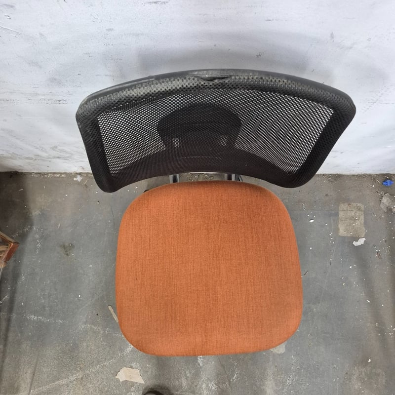 1x Office chair, Orange colour finish on seat, adjustable height lever One rip on the material of the top Dimensions: H 115cm x 58cm x 70cm