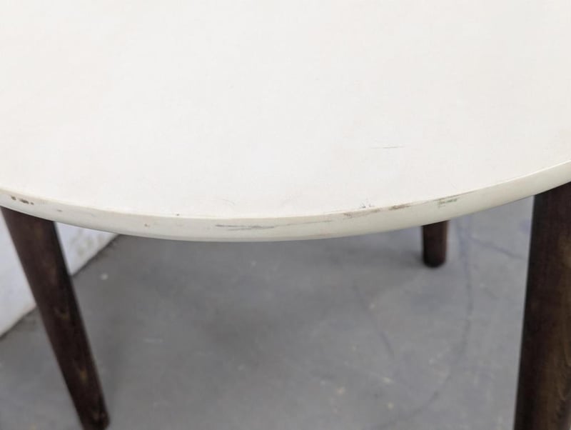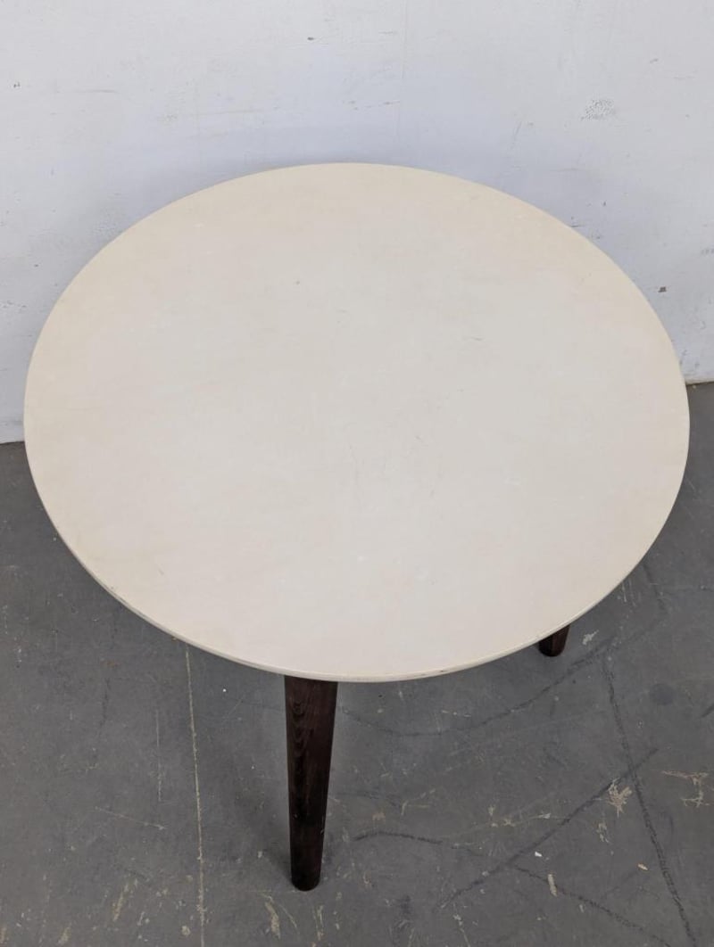 Side Table, Cream Marble Top, Timber Legs Dimensions: H 55cm x W 60.5cm x D 60.5cm