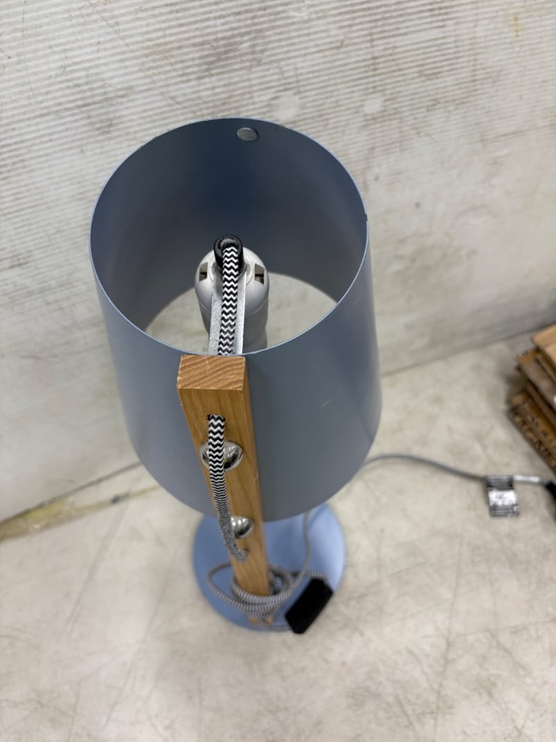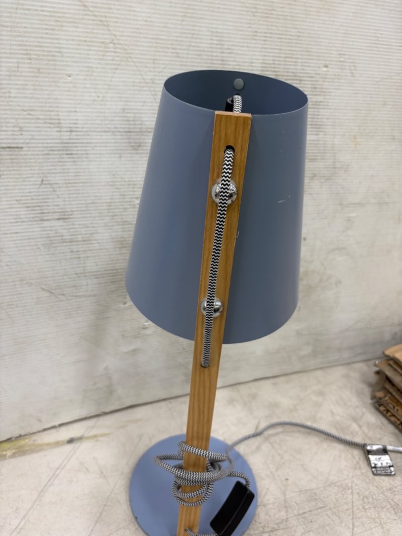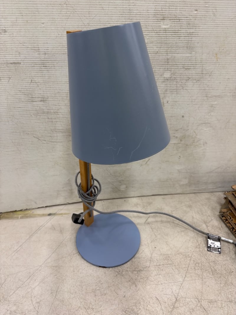 Bedside Lamp, Pale Blue Finished Metal Note: Condition May Vary Dimensions: H52cm W18cm L18cm BID PER EACH MUST TAKE TWO