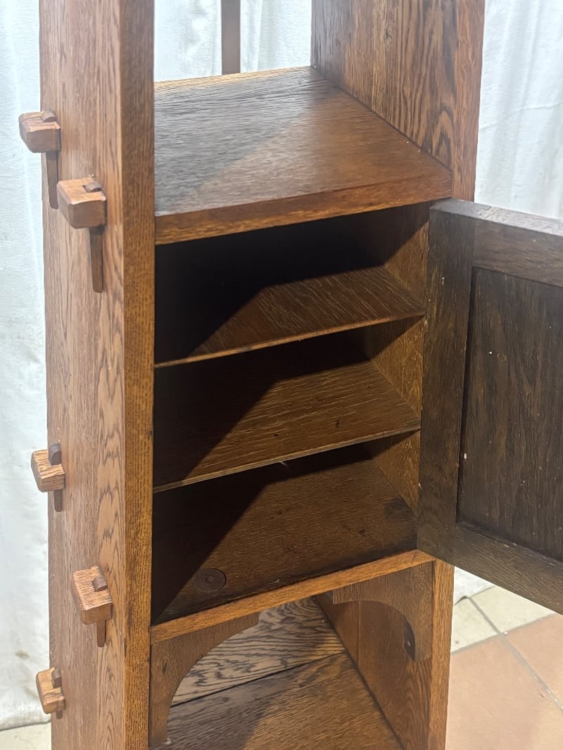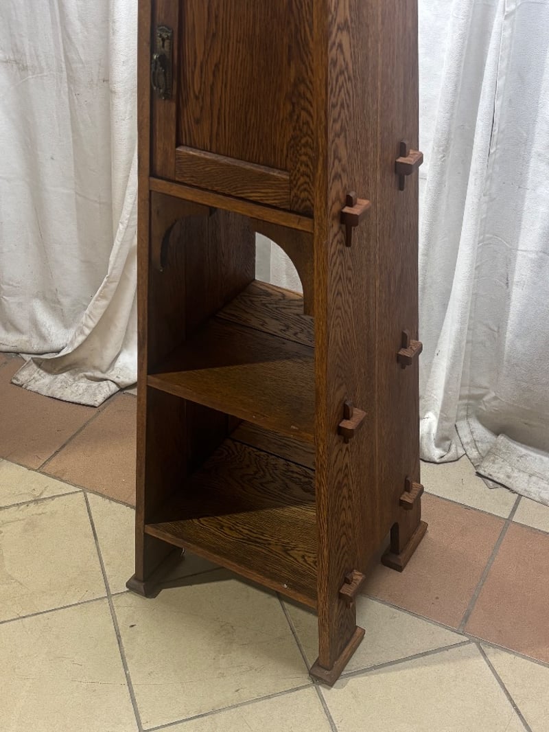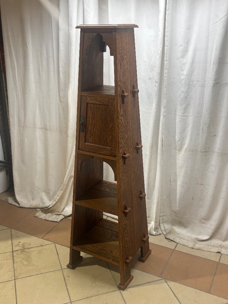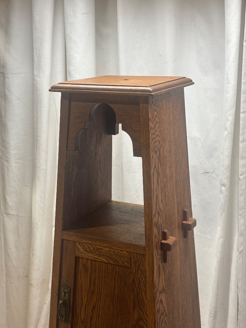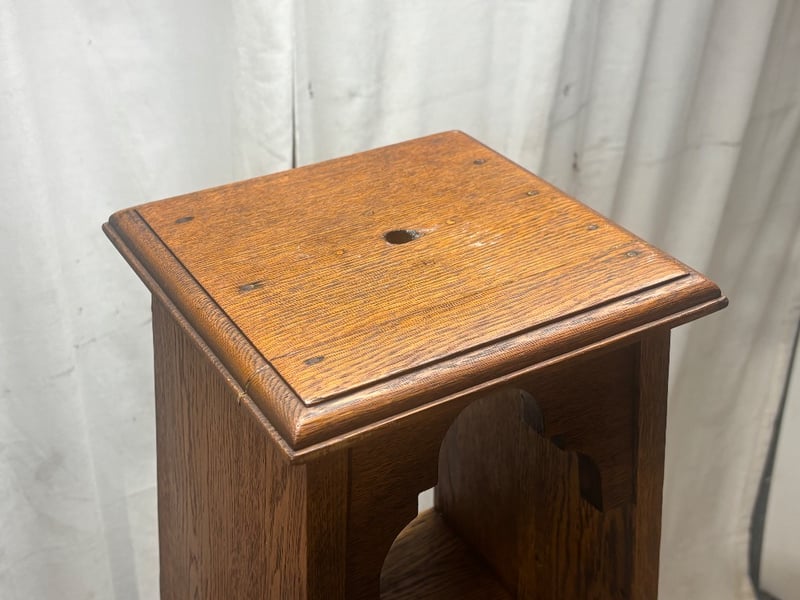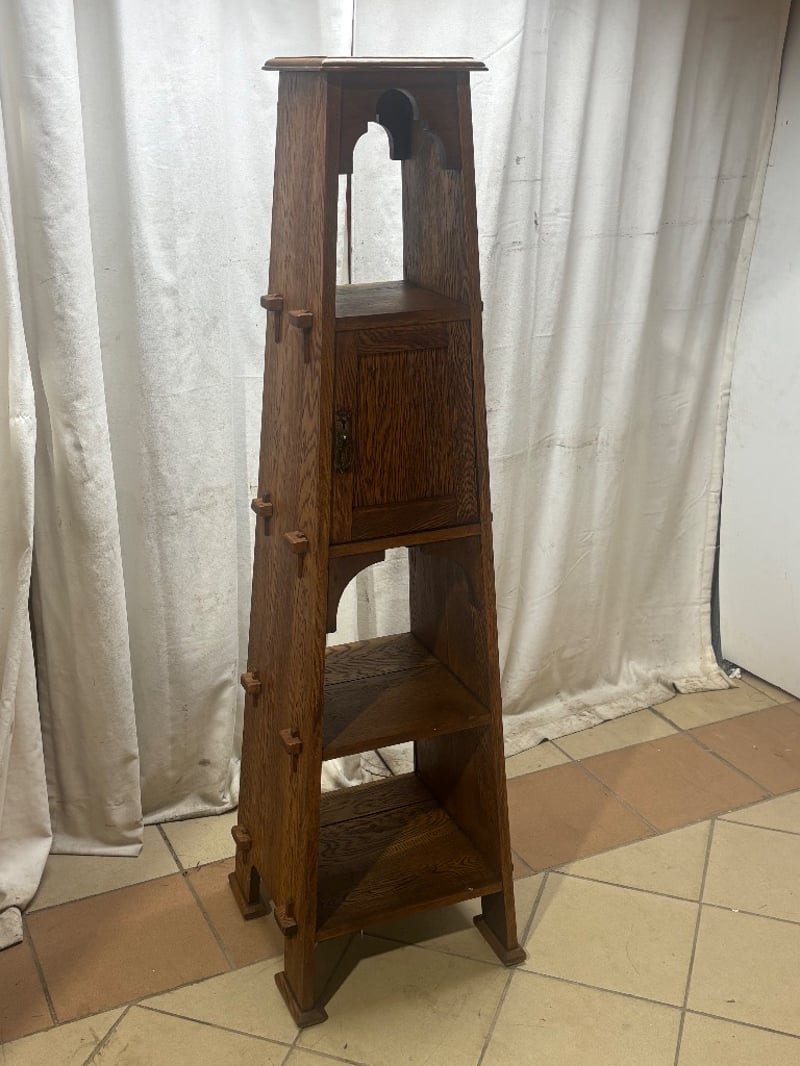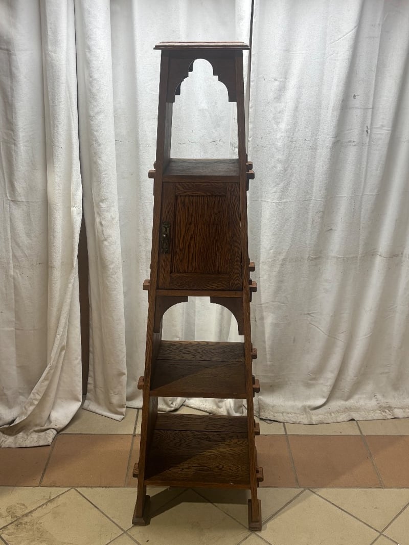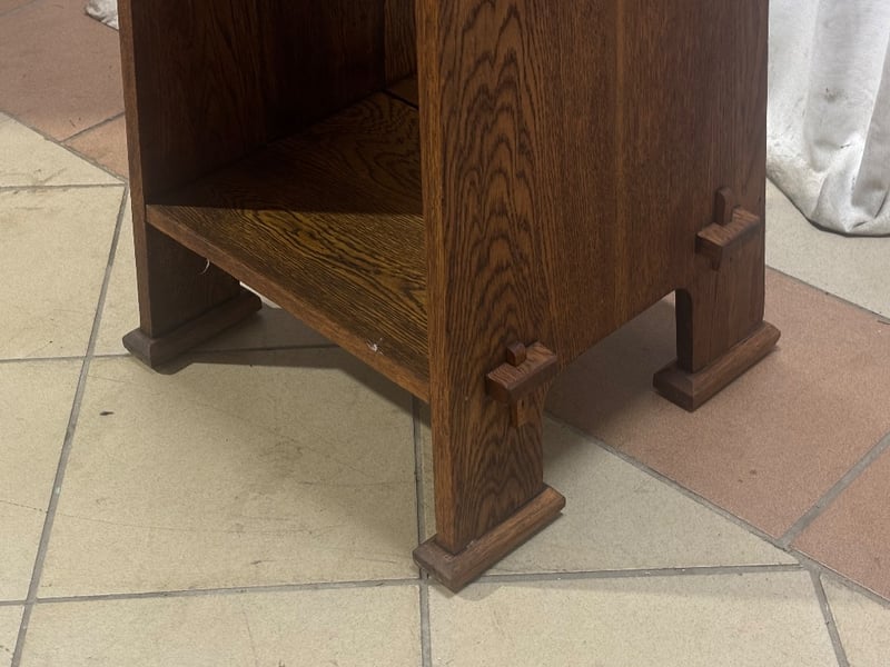 Magazine Pedestal, Dark Oak Finish, 4 Tier Shelf, Small Lock Compartment, Missing Key Dimensions: 152cm x 44cm x 44cm
