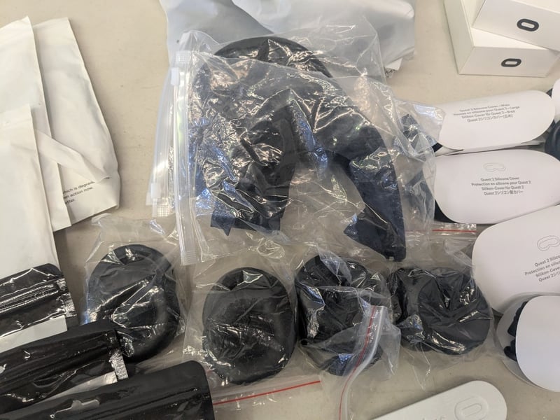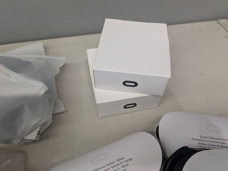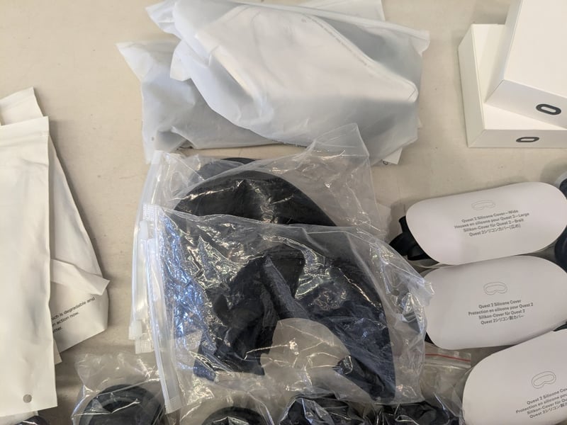 Assorted Virtual Reality Accessories for Oculus and Quest 2 including, Cable Management Gadgets, 3 in 1 Battery Strap, Silicone Covers, USB-C Charging cables plus more. See photos for details.