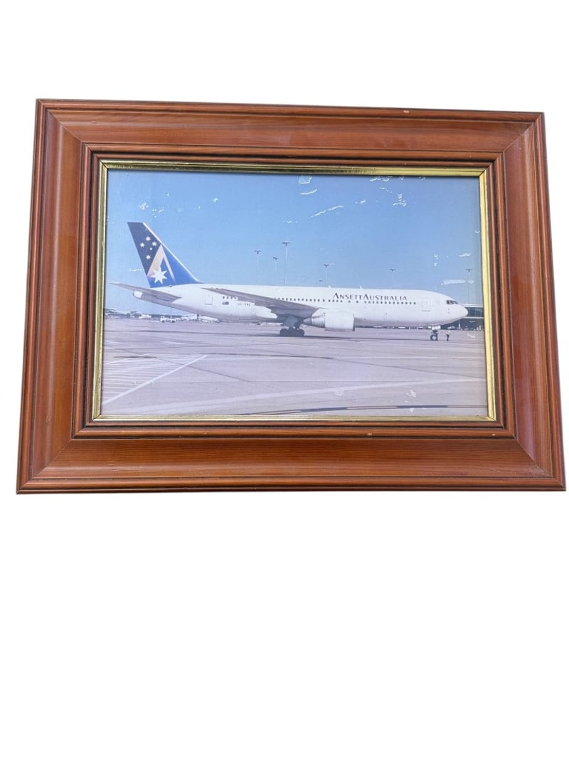 Ansett Australia airplane framed photo, frame size 30cm x 42cm NOTE: COSMETIC DAMAGE