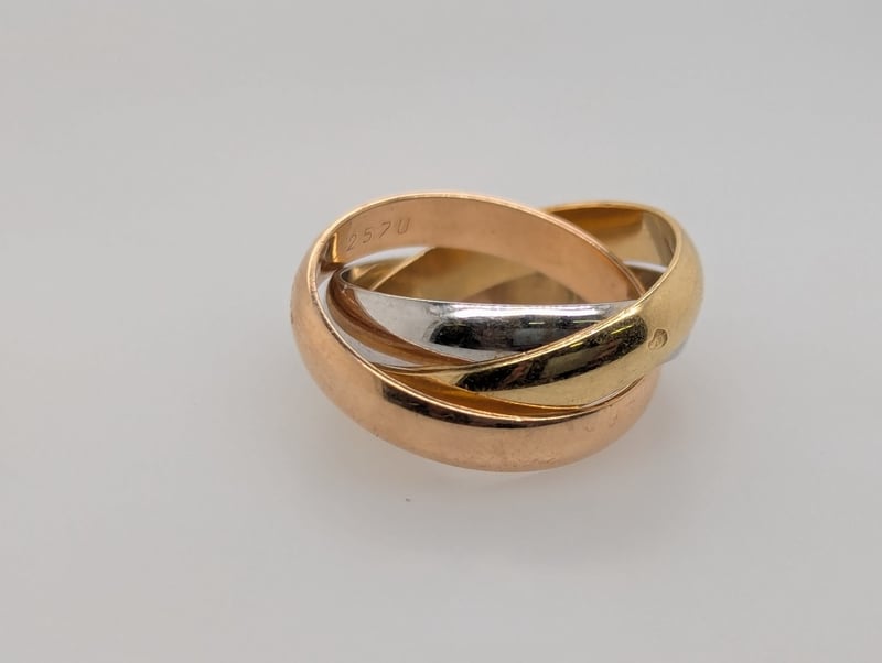 18K Yellow, White And Rose Gold Triple Band RingItem Weight: 6.84gStamped: 750