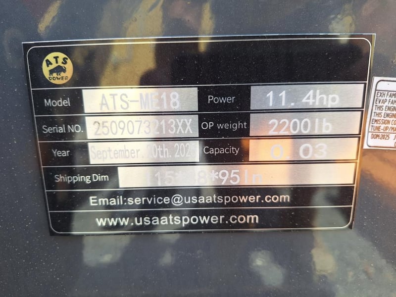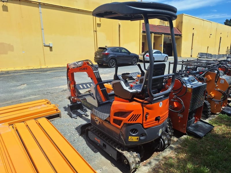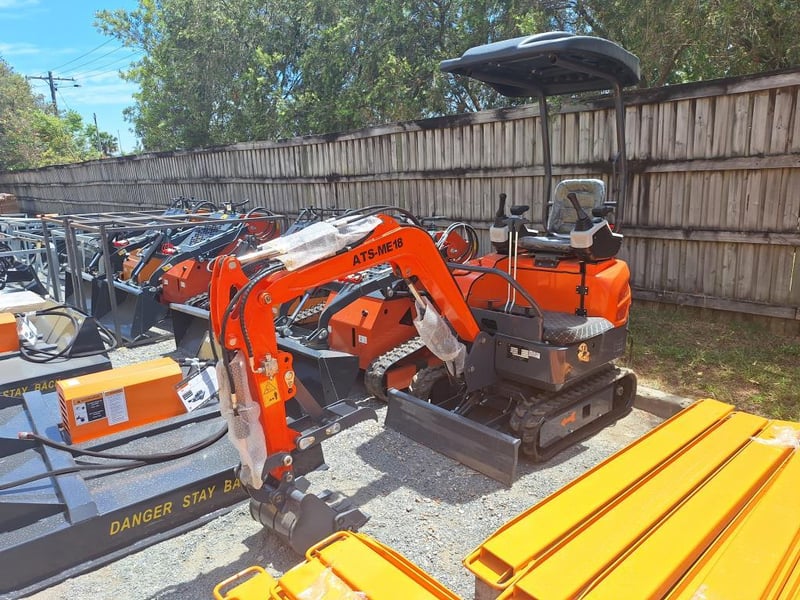 FACTORY DIRECT** 2025 ME18 MINI EXCAVATOR ATS ATS-ME18Serial No 2509073213XXWorking weight of the whole machine:3099.7ibsBucket capacity:1.41 feetLow/high walking speed: 0-1.31 miles/hClimbing ability:15%Maximum excavation height: 111.81 inchesB Maximum unloading height:C maximum excavation depth: 88.90 inchesE maximum excavation radius: 134.53 inchesBuldozer shovel width/height:43.7/16.1inchesMotor:KM385B-216Maximum power:11.4HpTheoretical fuel consumption: 0.66 gallons/hourThe rated set pressure of the main pump:18MPAThe maximum flow rate of the main pump:6.8 gallons/minuteMulti-valve:4 mechanical :4 hydraulic CalmPlease note: minor scuffs and marks may be evidentFor more information Contact King Cheung on 0477987576 or [email protected]Note: OEM images and VIDEOS shown are for illustration purposes only, and used as a guide only, inspections highly recommended.