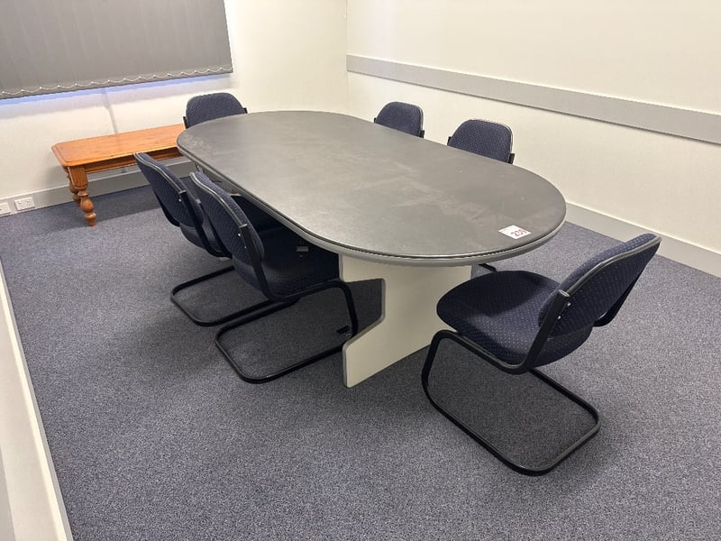 Board/ Meeting Room, 6 Chairs, Board Table, side timber Table SOLD AS LOTLocation: 30 Armada Place, Banyo, QLD Collection: Tuesday the 6th to Thursday the 8th of January *** PLEASE NOTE This is a SITE CLOSURE and NO refunds will be available *** Customers MUST sign in on site for inspections and collections and must adhere to the safety guidelines of the site Site safety gear is mandatory for all visitors: this includes a high-visibility top, and steel cap boots. The buyer is fully responsible for the dismantling and decommissioning of any electrical, plumbing and gas components. This work must be carried out by a qualified tradesperson. Buyers must provide their own tools, labor, lifting equipment, and transport to ensure the safe removal of the asset. If required, the buyer must organize a crane or Franna at their own expense. All contractors must carry current insurance and comply with Occupational Health and Safety (OHS) regulations. After asset removal, the site must be left clean and tidy. Inspection is highly recommended prior to purchase and removal