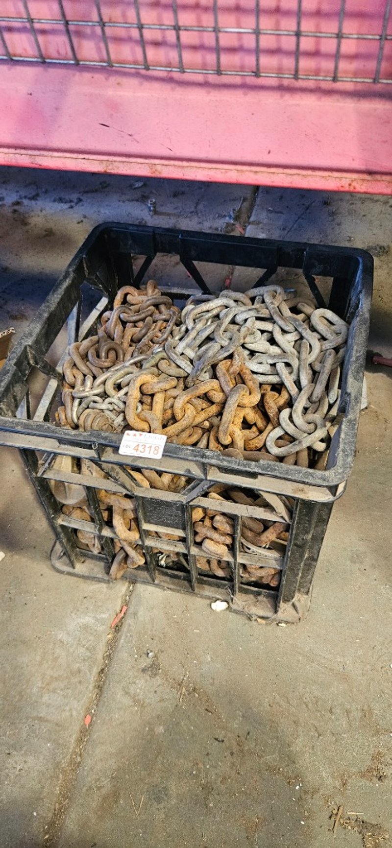 Chains, Crate of assorted length and sized chains Sold as lot *** PLEASE NOTE This is a SITE CLOSURE Collections must occur Strictly Thursday 18th Dec 2025 to Tuesday 23rd Dec 2025 - WEEKDAYS ONLY | 9am to 4pm, failure to collect items, shall be discarded / disposed of immediately, refunds will not be accepted *** Ryan Sawade | 0401 644 313 | [email protected]