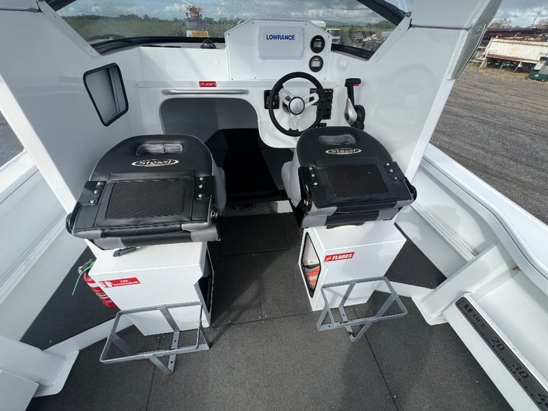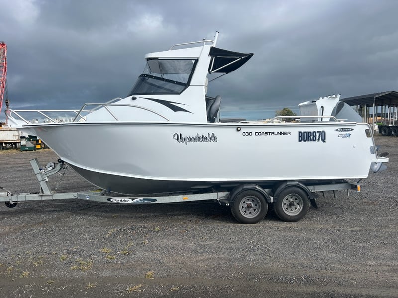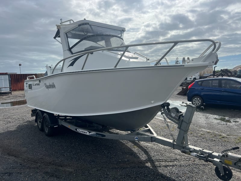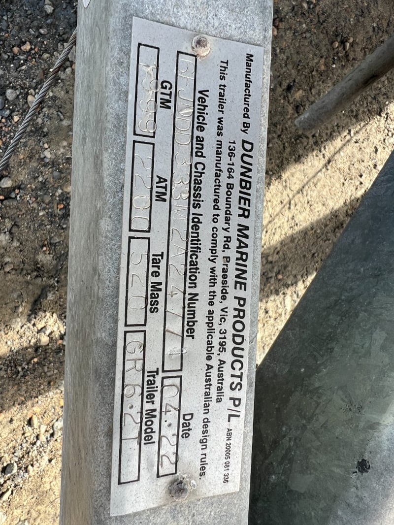 Description/extras: Life Jackets, Bilge Pump, Fenders, VHF, Compass. Savwinch Electrical Anchor Winch, Lowrance Fish Finder, Zip Wake, Duel Batteries, with isolation, Eperb, 2022 Dunbier Trailer with Led Lights