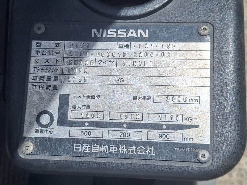 2004 Nissan 1.6Ton Petrol/LPG Forklift