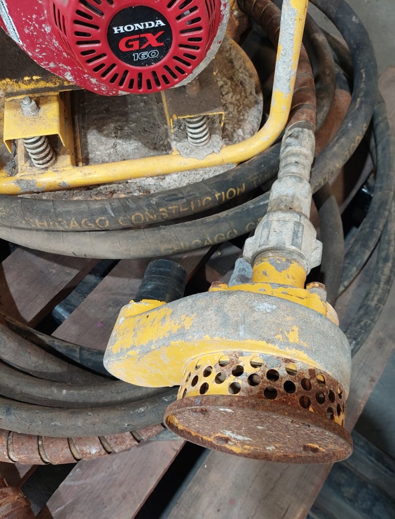 Flex-drive concrete vibrator with Honda GX160 engine, includes flex-drive submersible pump.Note: item is untested, signs of wear.