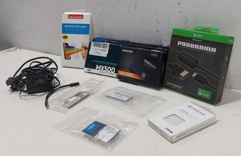 Assorted lot, SSD card, cable, memory card and more...Sold as lot.Note: untested, signs of wear