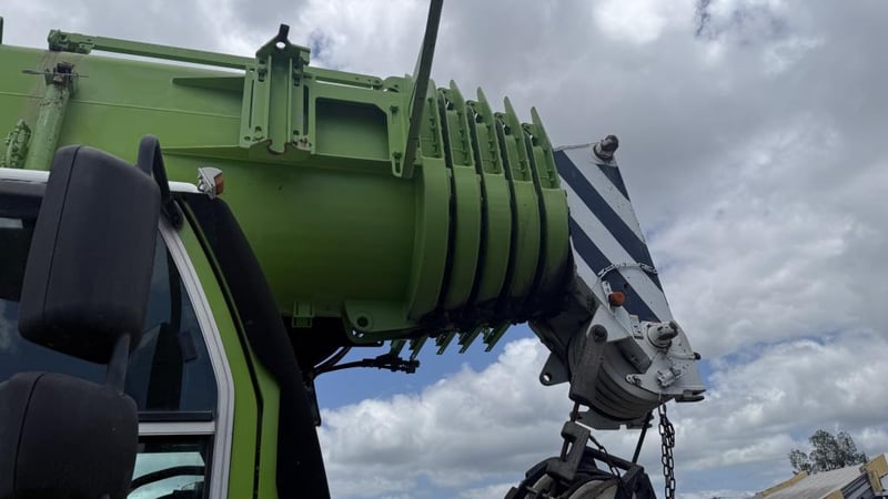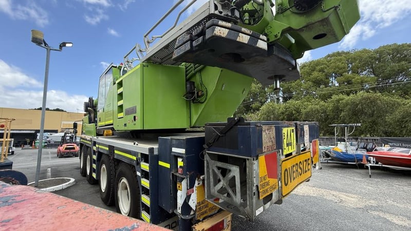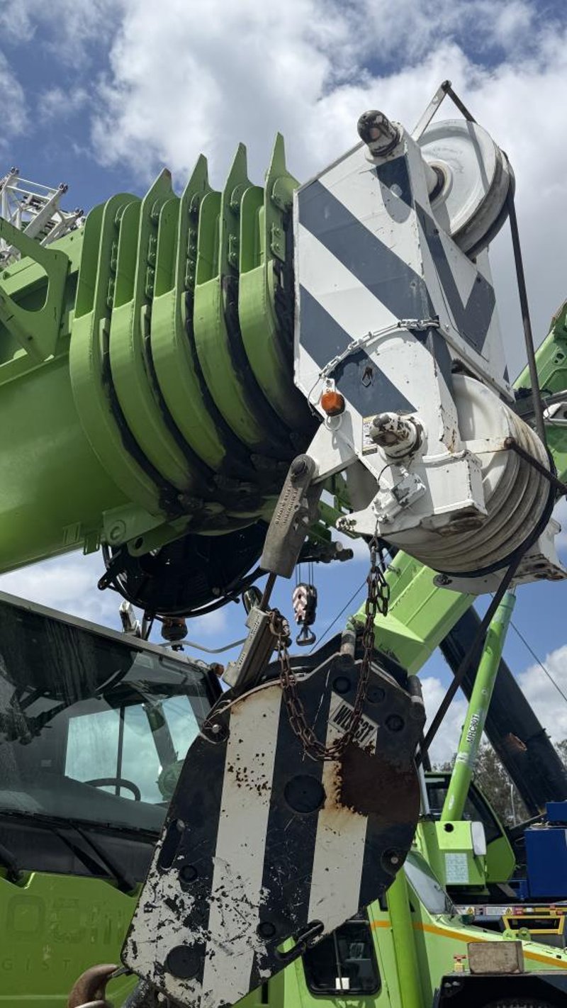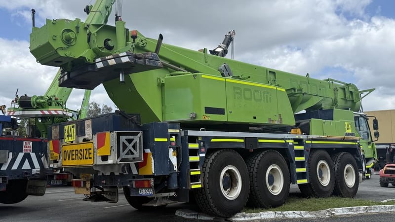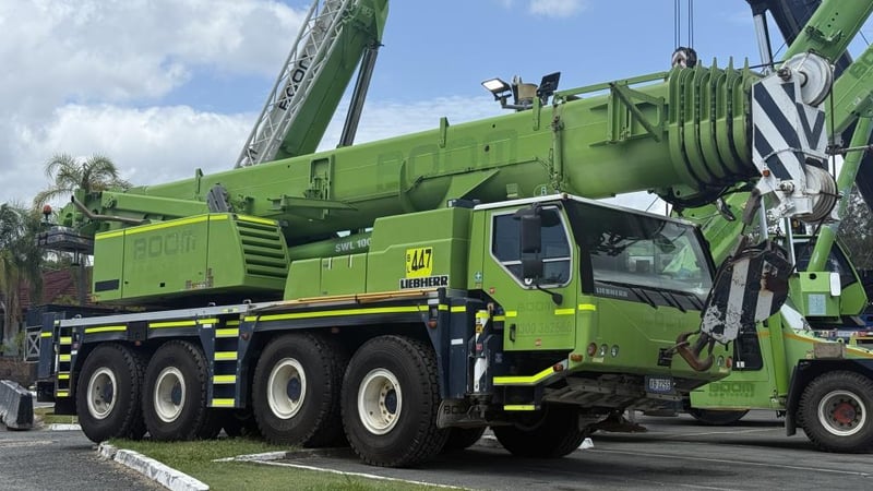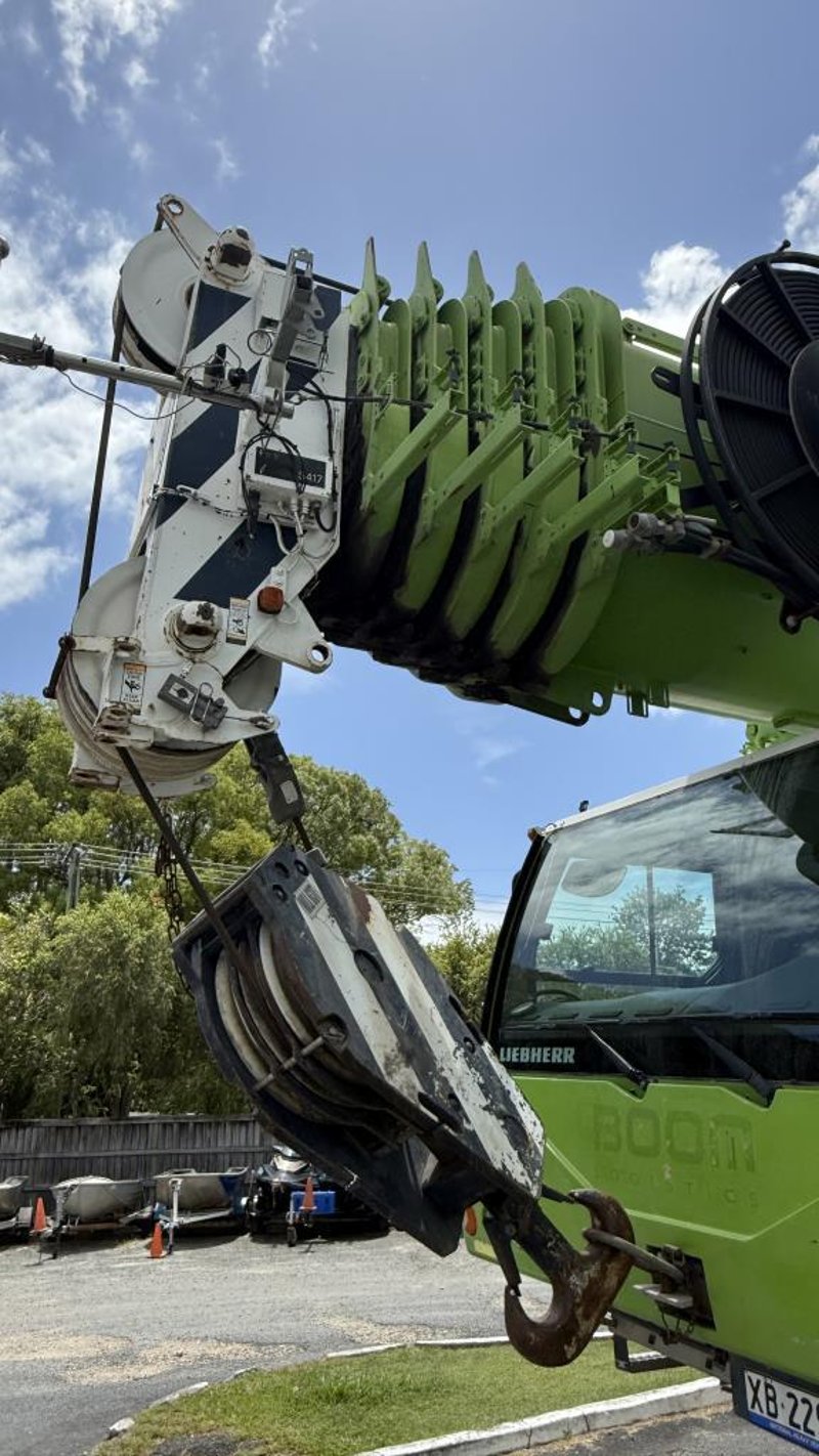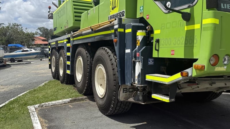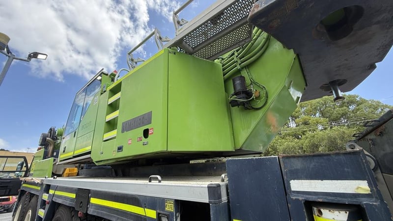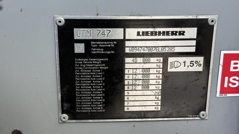 2007 Liebherr 100T All Terrain Mobile Crane Date of Manufacture: 2007 Make: Liebherr Model Name & Number: LTM 1100-4.1 Next Inspect: 12/07/2027 Next Major Inspection: 12/07/2032 Type: All Terrain Cabin: Enclosed Odometer: 177,989 km (indicating) Lower Hours: 9,429 hrs (indicating) Upper Hours: Not displayed Carrier Engine: Mercedes-Benz OM501LA – 11.9L V6 Turbo Diesel – 390 kW (530 hp) Transmission: ZF AS-Tronic automated gearbox, 8×8 all-wheel drive Hydraulic System: Twin variable-displacement axial piston pumps, 350-bar load-sensing system 2 hoist winches, hydrostatic slew drive, LICCON crane control Crane Engine: Mercedes-Benz OM904LA – 4.25L turbo diesel (dedicated hydraulic engine) Colour: Green Description: Fly & needle jib COUNTER WEIGHTS included: 10.5T 1.4T 1.75T 3.0T Serial: 063534 Carrier VIN: W094747007EL05285