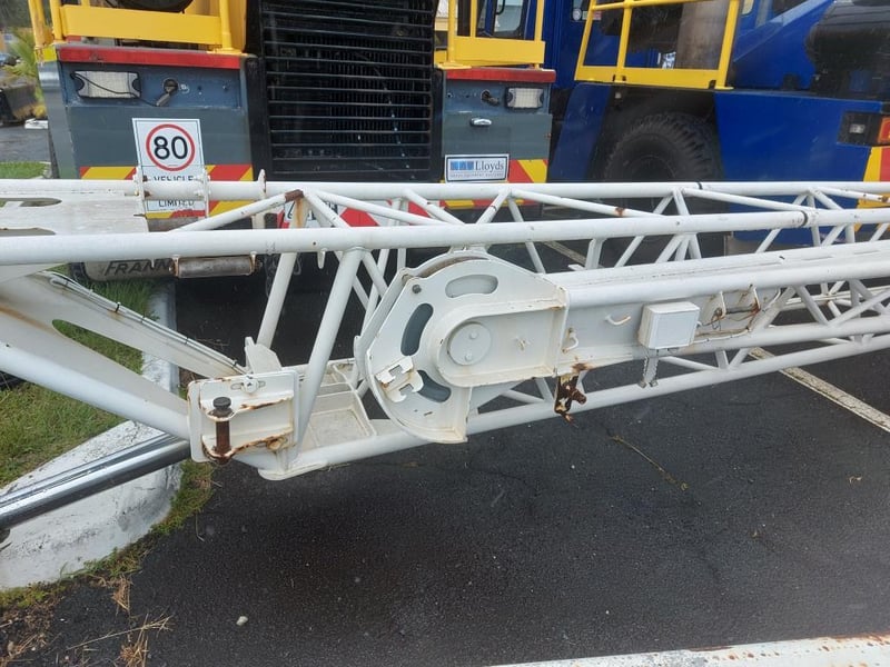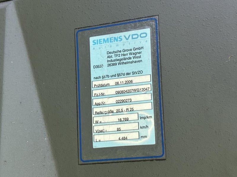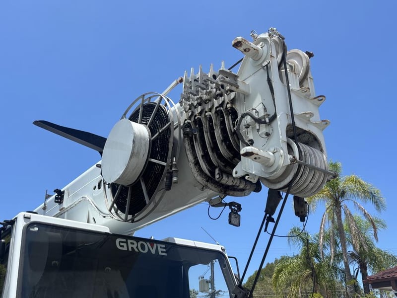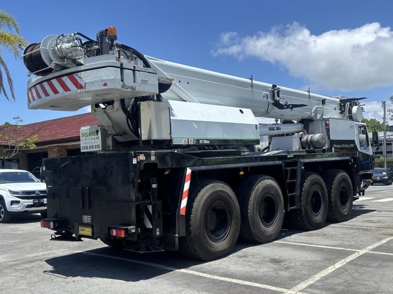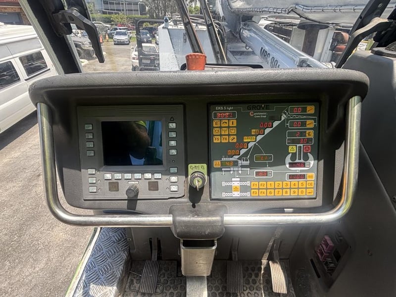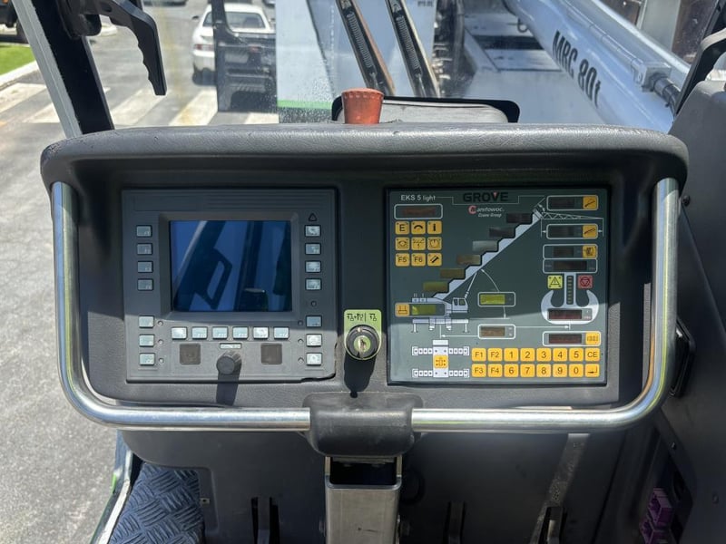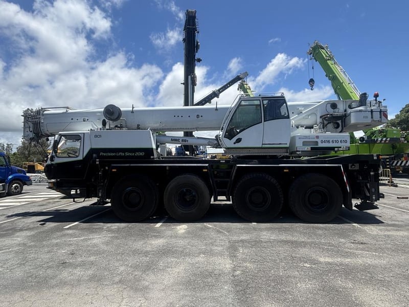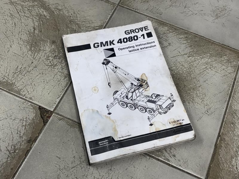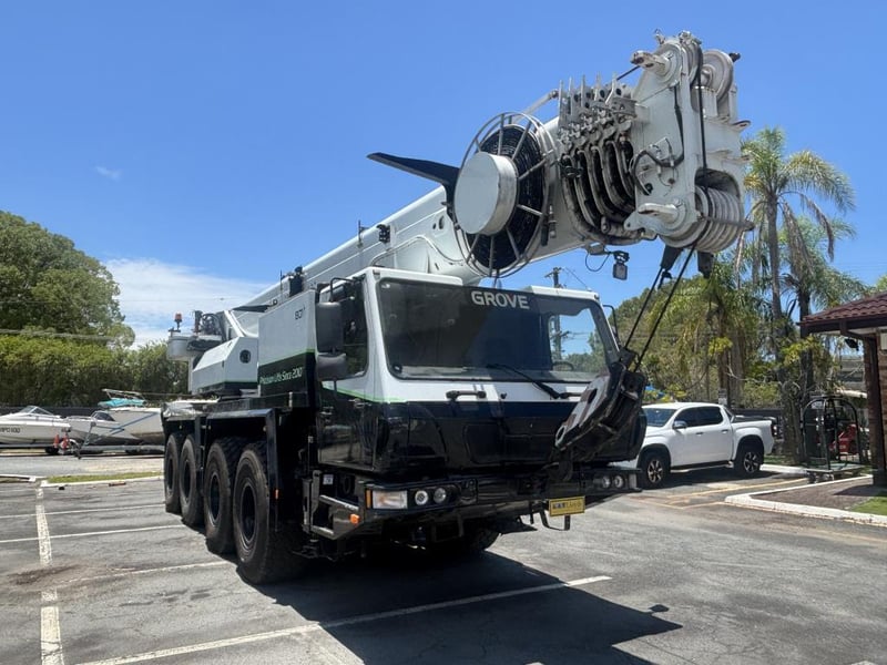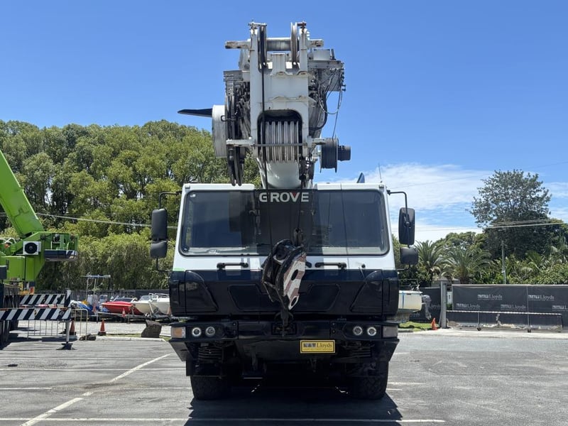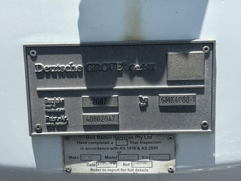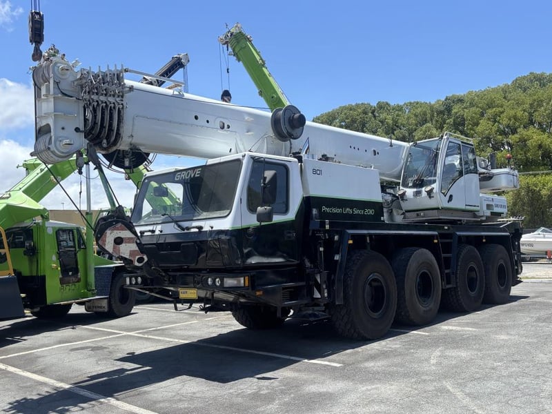 2006 Grove GMK 4080-1 All Terrain Mobile Crane Date of Manufacture: 2006 Make: Grove Model Name & Number: GMK 4080-1 Next Major Inspection: 06/2029 Type: All Terrain Cabin: Enclosed Odometer: 122629kms Lower Hours: 19700hrs Upper Hours: Unspecified Transmission: Automatic Carrier Engine Details: 6-cylinder, water-cooled, turbocharged Mercedes-Benz OM501LA diesel engine - Gross Power: ~290 kW / 389 hp @ ~1800 rpm - Max Torque: ~1850 Nm @ ~1080 rpm - Fuel Capacity: ~400 L (105.7 gal) - Electrical: 28 V system, ~100 A alternator Colour: White Description: Maximum Rated Lifting Capacity: 80 t (≈ 176,370 lb) at short radius (approx 2.5 m) Max Boom Length: 51 m (167 ft) telescopic boom (6 sections) Min Boom Length: 11 m (36 ft) Max Boom Elevating Angle: 82° Optional Luffing/Jib Extensions: typically up to 8.7 – 21 m (fly or luffing jib) depending on configuration Serial: 001 700 028