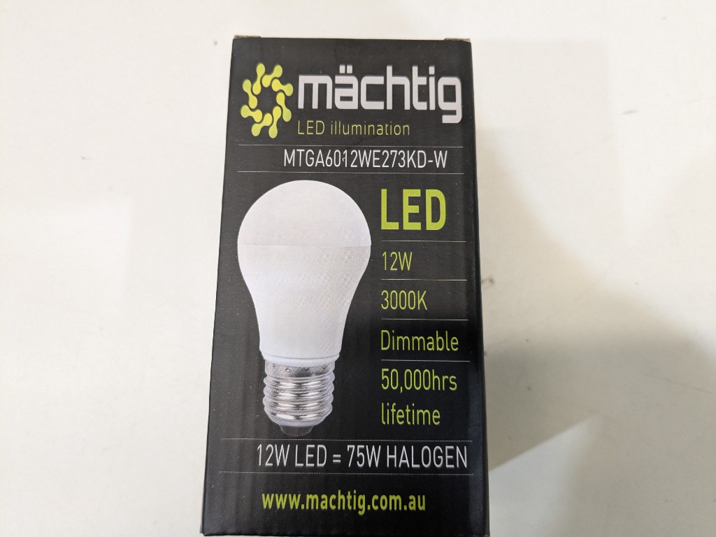 Mächtig LED Lightbulbs, 12W 240V 50Hz 3000K E27 DIM QTY: 48