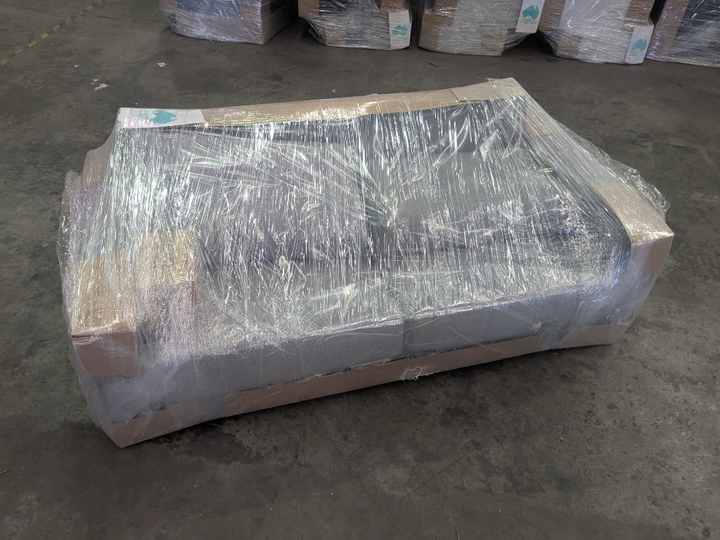 RRP $599 Jazz 2 Seater Sofa in Groove Grey and Oak Legs.Dimensions : 57cm (H) x 164cm (W) x 87cm (D)Note: Condition is new and wrapped but some Items Have Slight Scuff Marks & Stains, Some Items Marked Warehouse Rejected PARTS MAY BE MISSING, INSPECTION HIGHLY RECOMMENDED