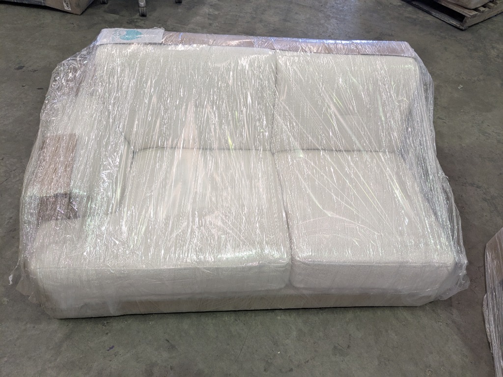 RRP$899 Miami 2 Seater Modular in Coney Ivory with Black Legs.Dimensions : Condition is new and wrapped but some Items Have Slight Scuff Marks, damaged & Stains, Some Items Marked Warehouse Rejected PARTS MAY BE MISSING, INSPECTION HIGHLY RECOMMENDED