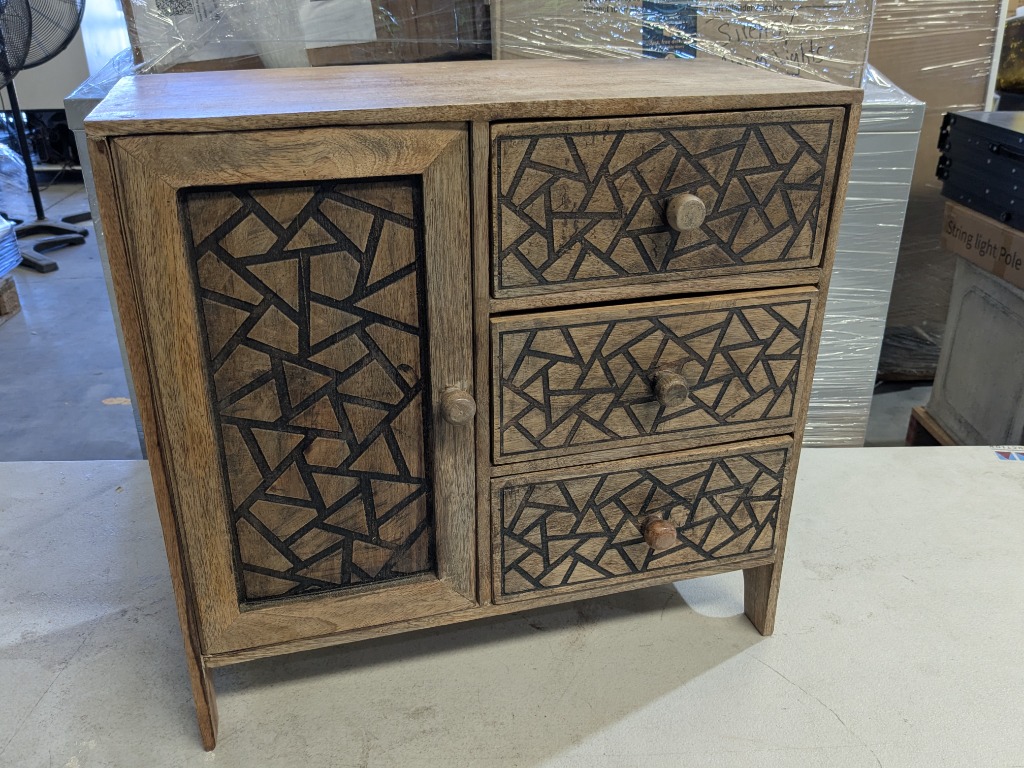 Natural Timber Storage Unit, 3 x Drawers, 1 x Cupboard