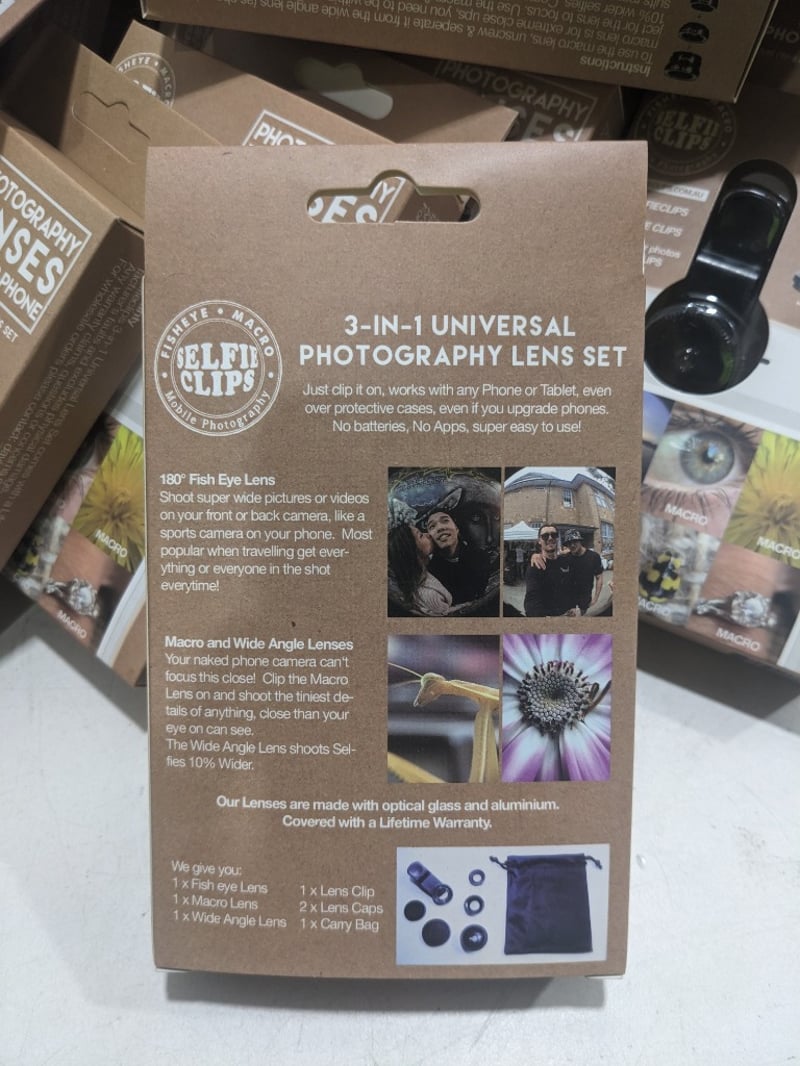 Selfie clips, photography lenses for your phone, 3 in 1 universal lenses set.