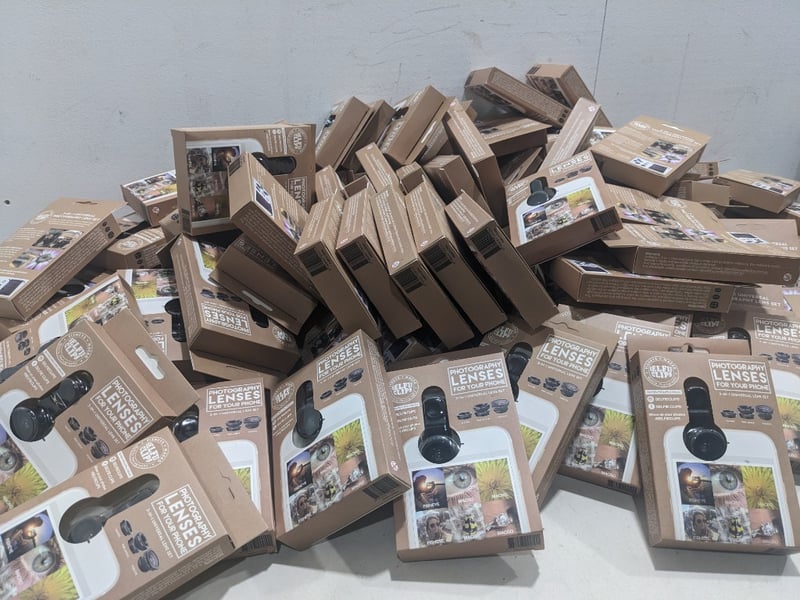 Selfie clips, photography lenses for your phone, 3 in 1 universal lenses set.Qty: 144 per boxSold as a lot.