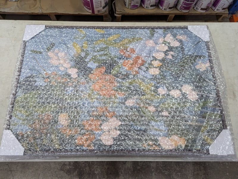 Artwork on canvas, floral style imagery, frame size: 62cm x 92cm