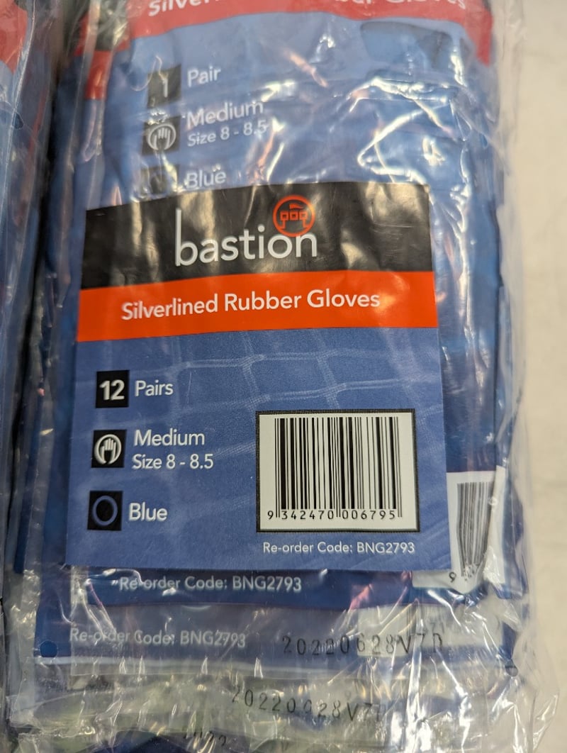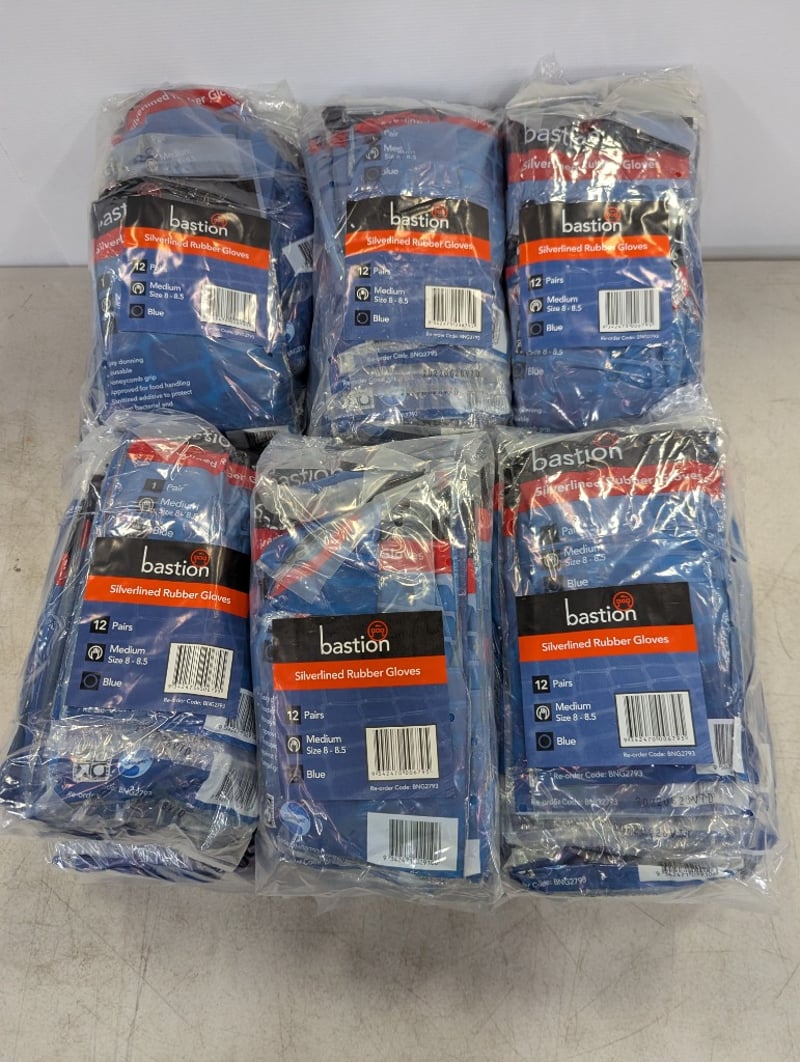 Rubber gloves, Bastion, medium size 8 - 8.5, blue, 12 per pack, 12 packsSOLD AS LOT