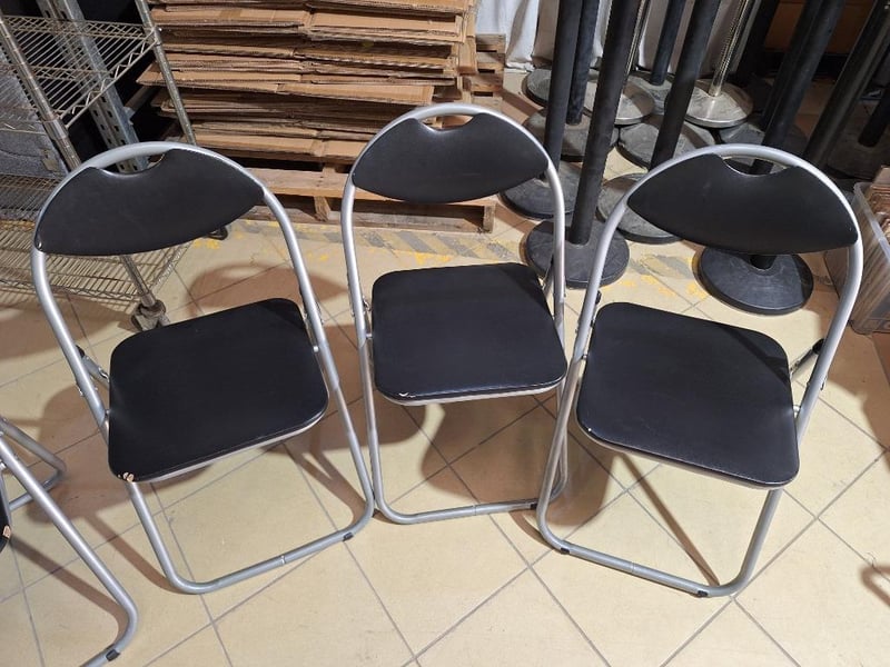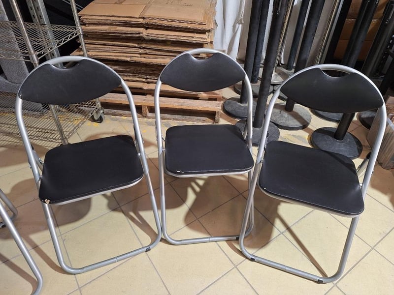 X3 Foldable Chairs, Metal Style, Black FinishPLEASE NOTE: Chairs Are RippedSOLD AS LOT
