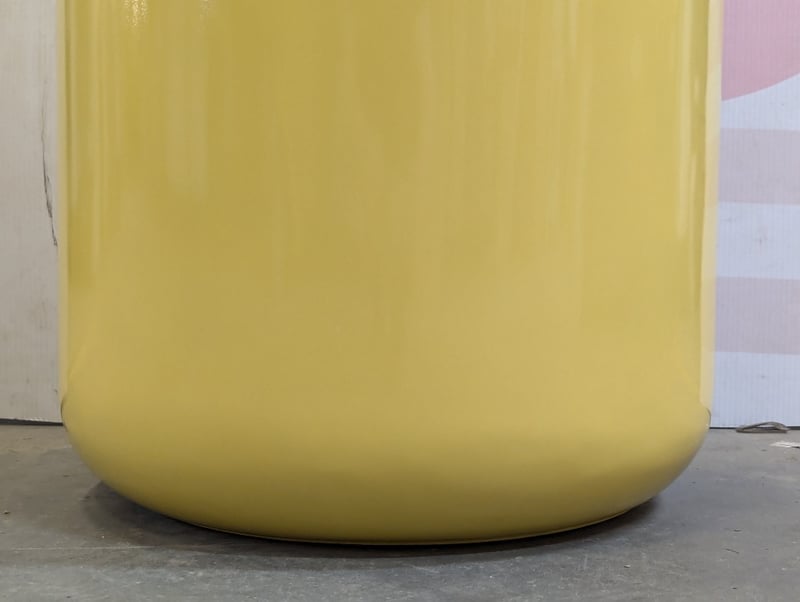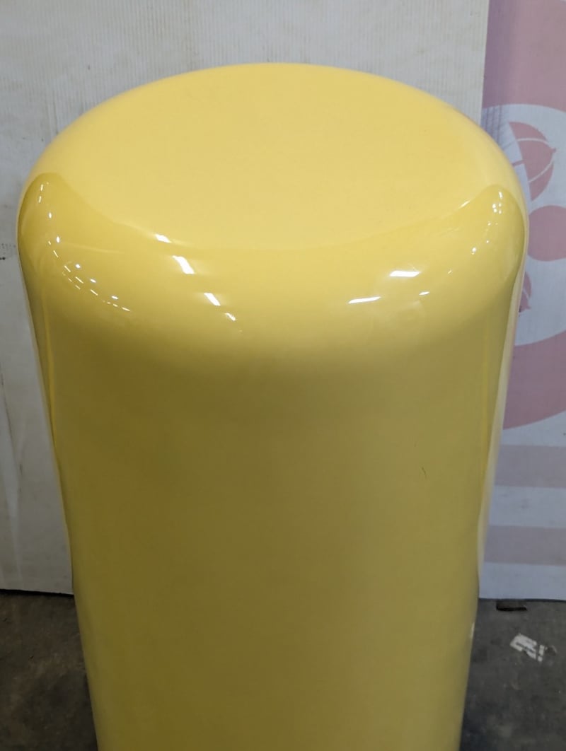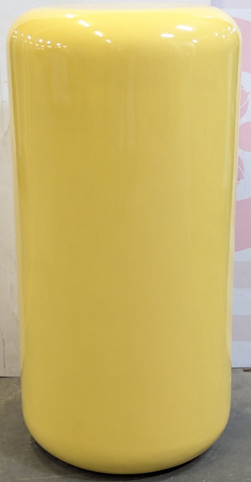 Yellow plinth, plastic construction, curved top edges, yellow felt base, size: 90cm H x 45cm W Bid per each, must take 2