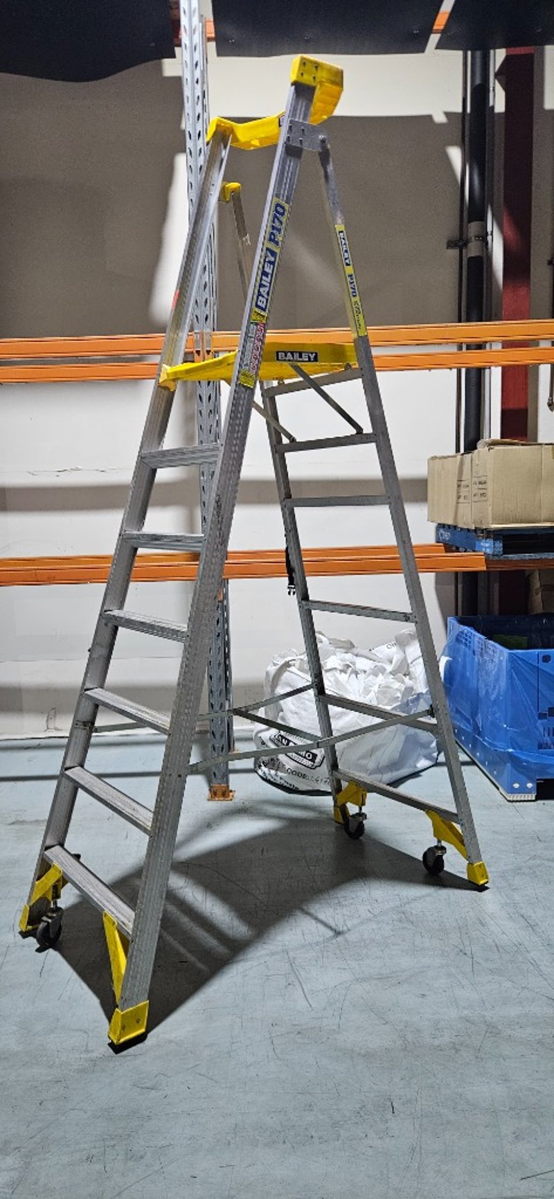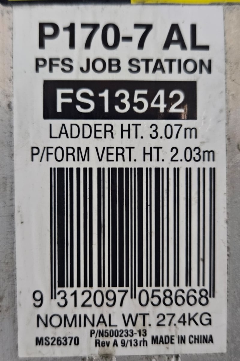 Ladder, Bailey Aluminium PFS Workstation Ladder, Model: P170-7 AL, H 307cm, Platform Vert H 203cmLocation: Mawson Lakes, South Australia Contact: Ryne Aylward - 0418 449 819 or [email protected] Inspections: Wednesday 29th 10am - 2pm & Inspections Monday the 3rd 8am - 4pm ** Important Notice to Buyers ** Customers MUST sign in on site for inspections and collections Site safety gear is mandatory for all visitors: this includes a high-visibility top, and steel cap boots. The buyer is fully responsible for the dismantling and decommissioning of any electrical, plumbing and gas components. This work must be carried out by a qualified tradesperson. Buyers must provide their own tools, labor, lifting equipment, and transport to ensure the safe removal of the asset. If required, the buyer must organize a crane or Franna at their own expense. All contractors must carry current insurance and comply with Occupational Health and Safety (OHS) regulations. After asset removal, the site must be left clean and tidy. Inspection is highly recommended prior to purchase and removal.