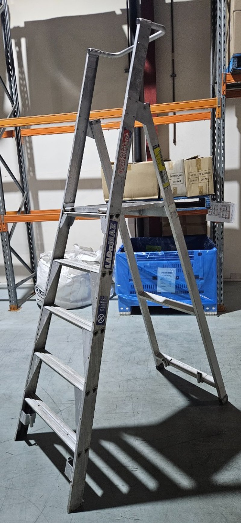 Ladder, LADaMAX Aluminium Platform Ladder. H 235cm Platform Height 145cmLocation: Mawson Lakes, South Australia Contact: Ryne Aylward - 0418 449 819 or [email protected] Inspections: Wednesday 29th 10am - 2pm & Inspections Monday the 3rd 8am - 4pm ** Important Notice to Buyers ** Customers MUST sign in on site for inspections and collections Site safety gear is mandatory for all visitors: this includes a high-visibility top, and steel cap boots. The buyer is fully responsible for the dismantling and decommissioning of any electrical, plumbing and gas components. This work must be carried out by a qualified tradesperson. Buyers must provide their own tools, labor, lifting equipment, and transport to ensure the safe removal of the asset. If required, the buyer must organize a crane or Franna at their own expense. All contractors must carry current insurance and comply with Occupational Health and Safety (OHS) regulations. After asset removal, the site must be left clean and tidy. Inspection is highly recommended prior to purchase and removal.