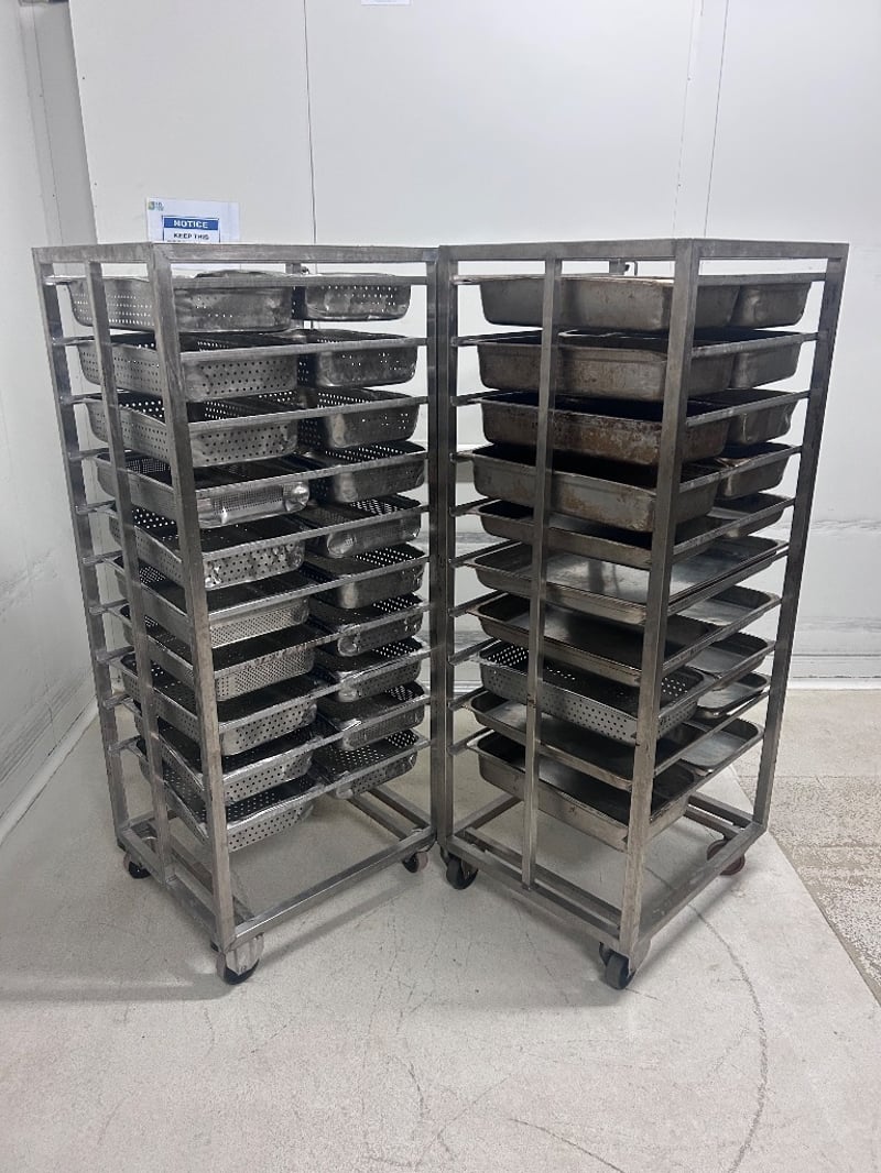 Storage Trolley, 2 x Stainless Steel Food Handling Trolleys, Including Stainless Steel Removable Trays.