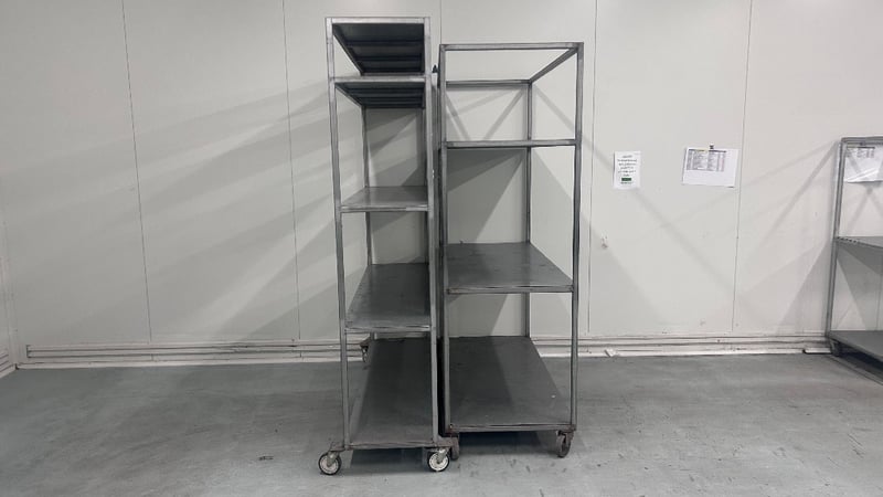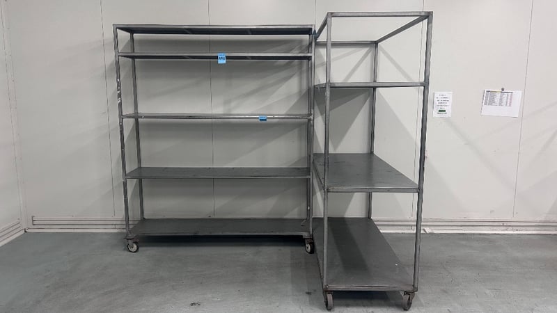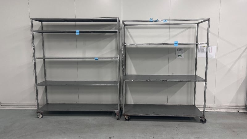 Shelving, 2 x Large Galvanised Shelving Units, On Wheels. Dimensions:235cm x W:200cm x D:50.Sold As Lot.