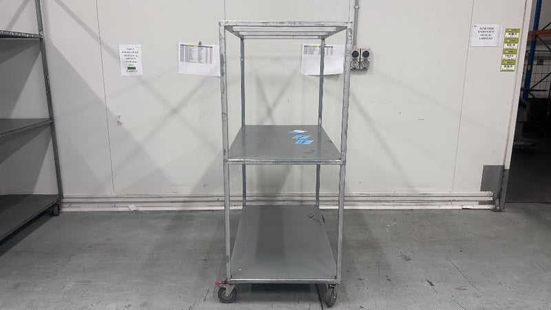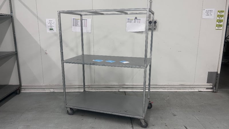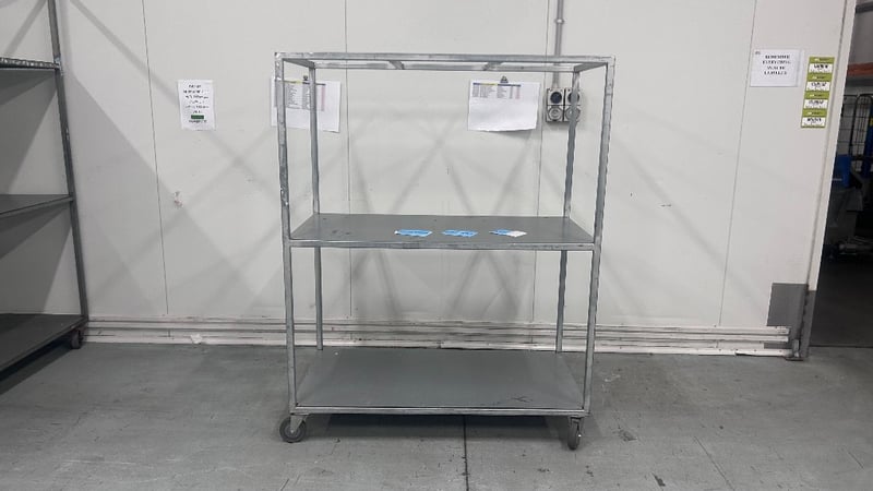 Shelving, Medium Sized Galvanised Shelving Unit, On Wheels. Dimensions:177cm x W:140cm x D:75cm.Sold As Lot.