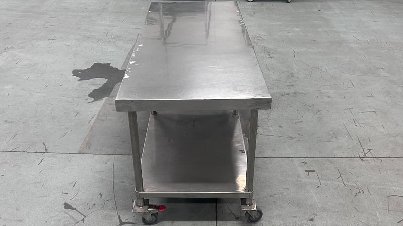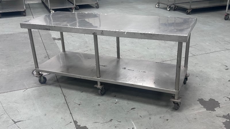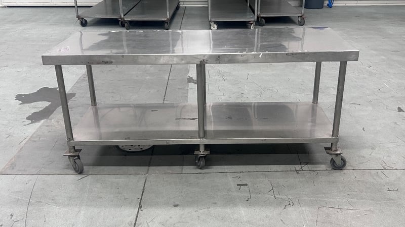 Work Bench, Stainless Steel Work Bench, On Wheels.Dimensions: H:80cm x W:180cm x D:70cm.