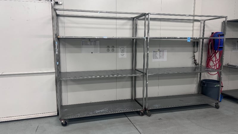 Trolley, Plastic 2 Tier Trolley with Assorted Nitrile Blue Gloves. W 103cm D 50cm H 95cmSold as Lot