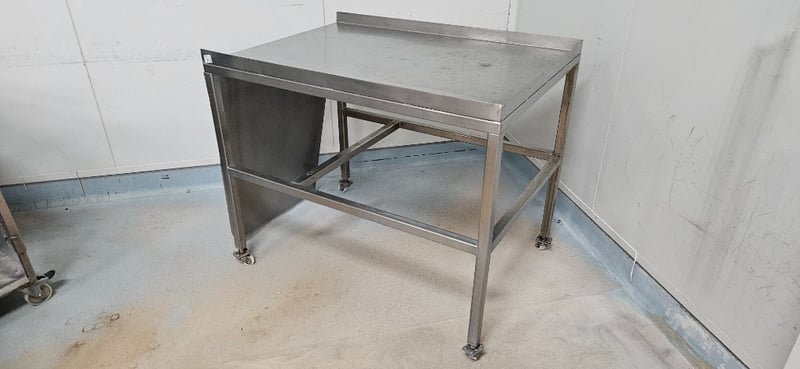 Table, Stainless Steel Table with Wheels, W 121cm D 86cm H 101cm