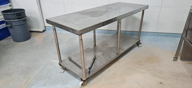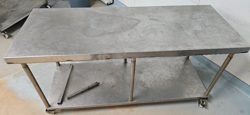 Table, Stainless Steel Table with Wheels, W 180cm D 70cm H 92cm